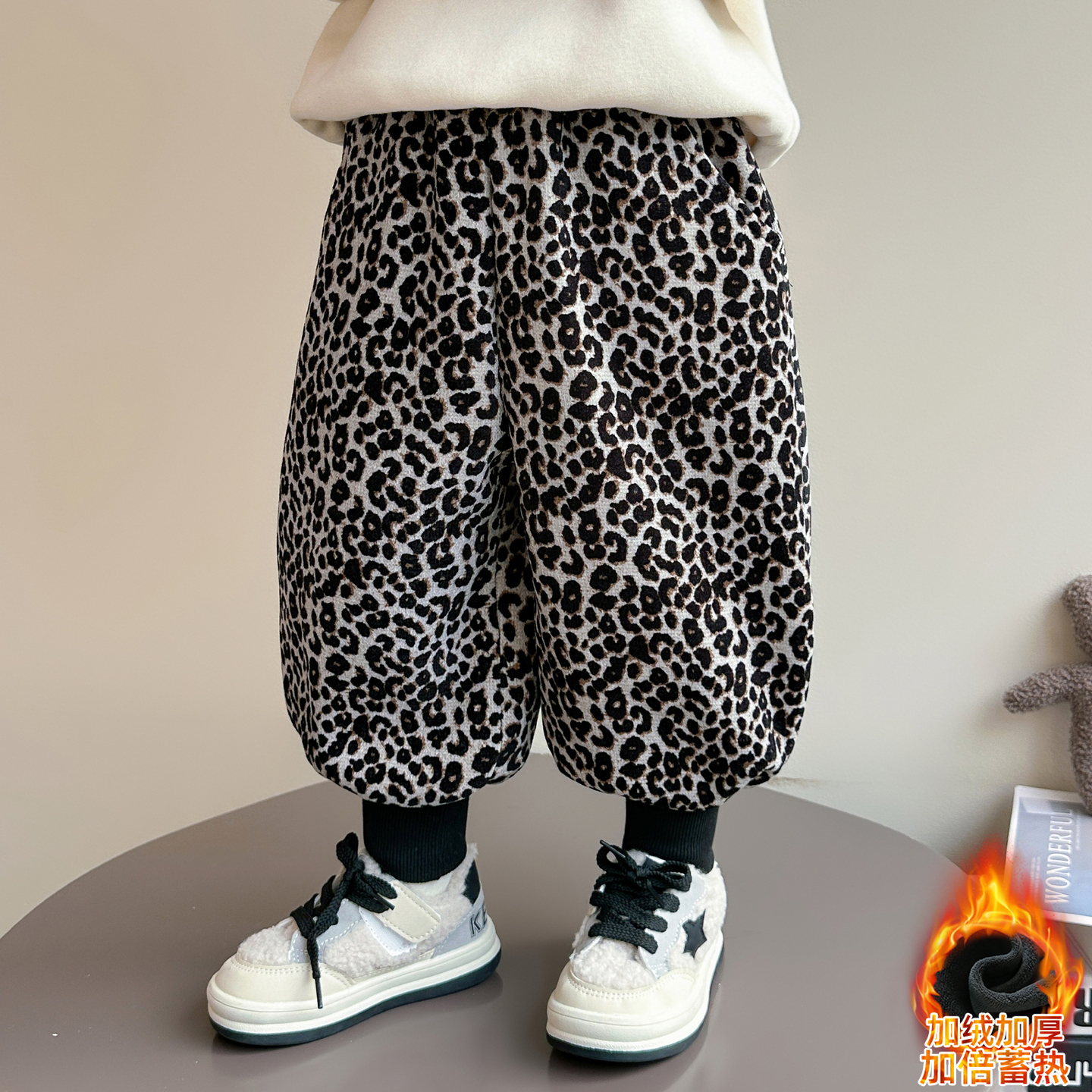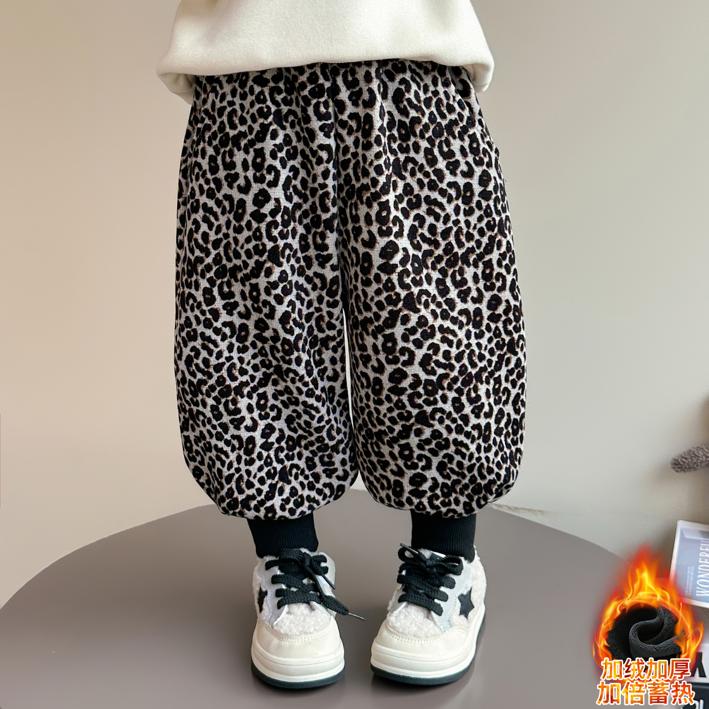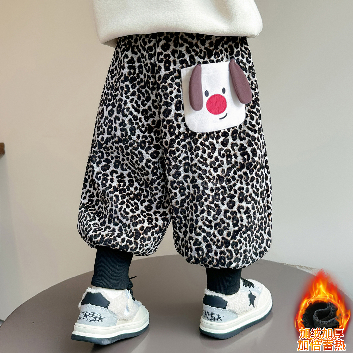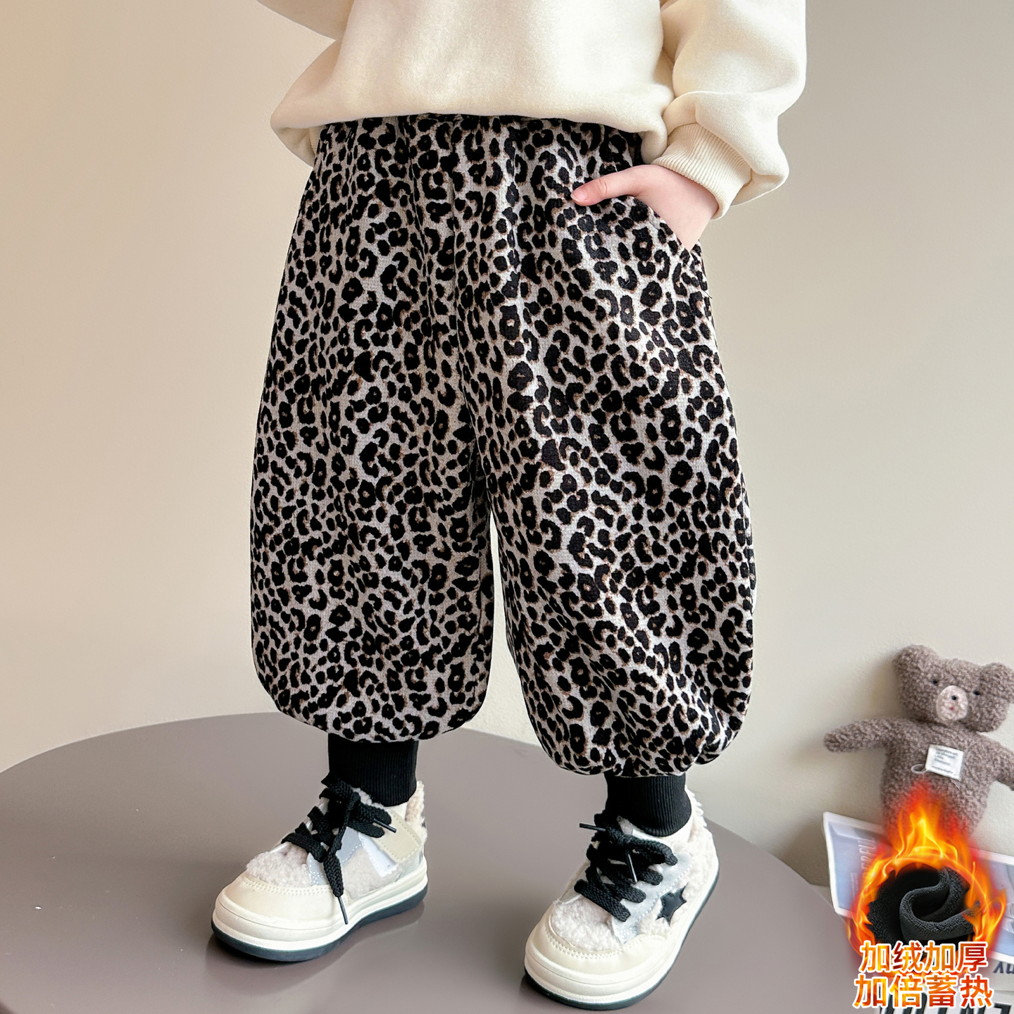女宝宝休闲运动长裤 儿童秋冬豹纹加绒加厚保暖裤 子2025新款 女童裤
