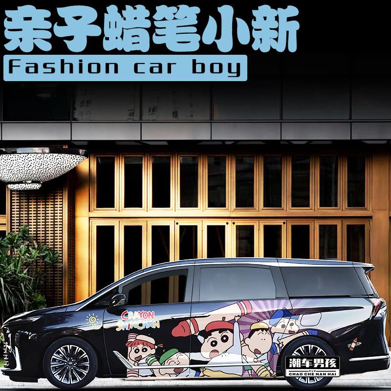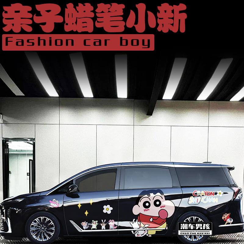 接娃专属 创意定制 别克GL8车贴亲子蜡笔小新搞怪汽车两侧车贴个性