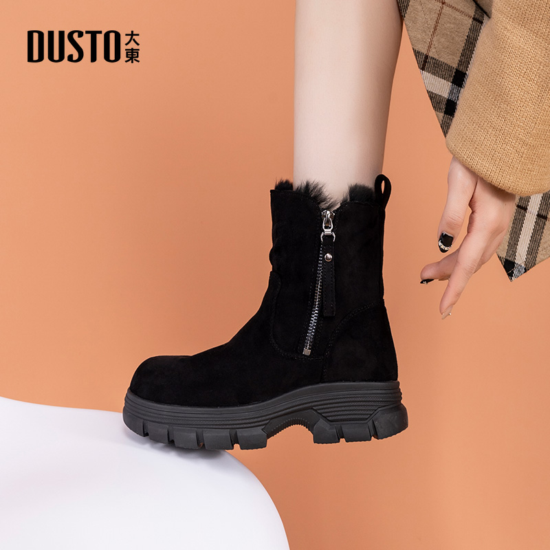 厚底中筒雪地靴侧拉链加厚抗寒女短靴子 新款 大东女鞋 棉靴2025冬季