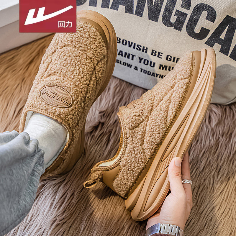 户外休闲运动一脚蹬面包鞋 加绒保暖棉鞋 冬季 回力雪地靴男2025新款