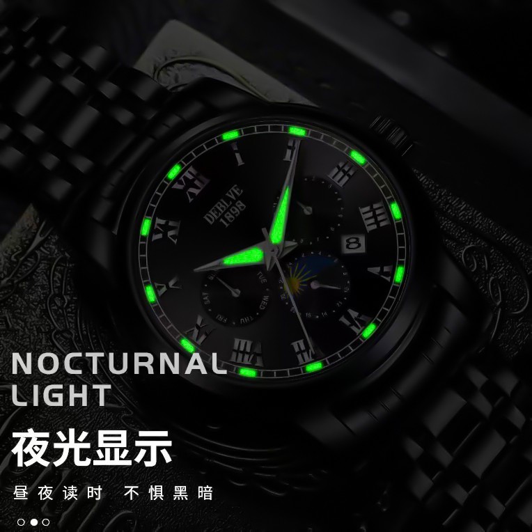 全自动男表手表男款 机械风全自动防水数字双日历防水腕表男高级感