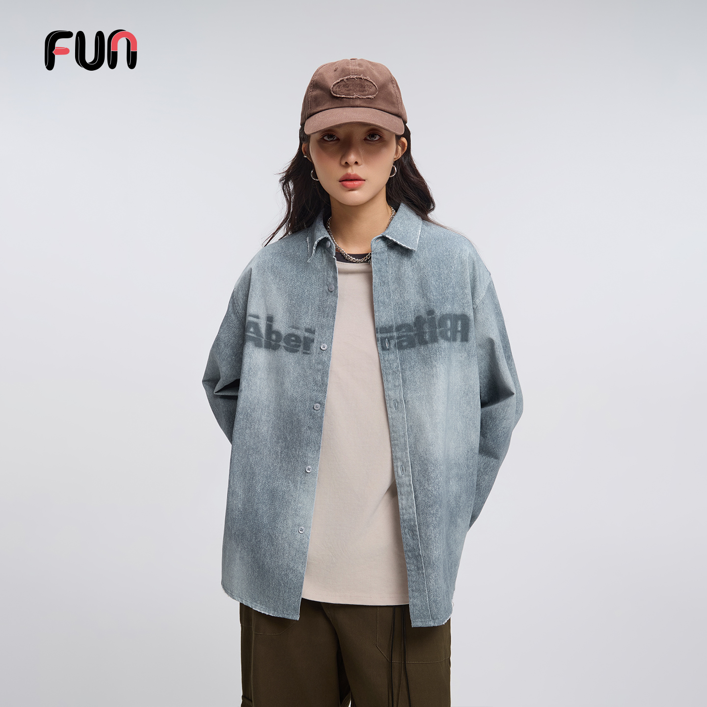宽松休闲百搭情侣上衣 2025年秋冬新款 Fun潮牌牛仔衬衫 男女款