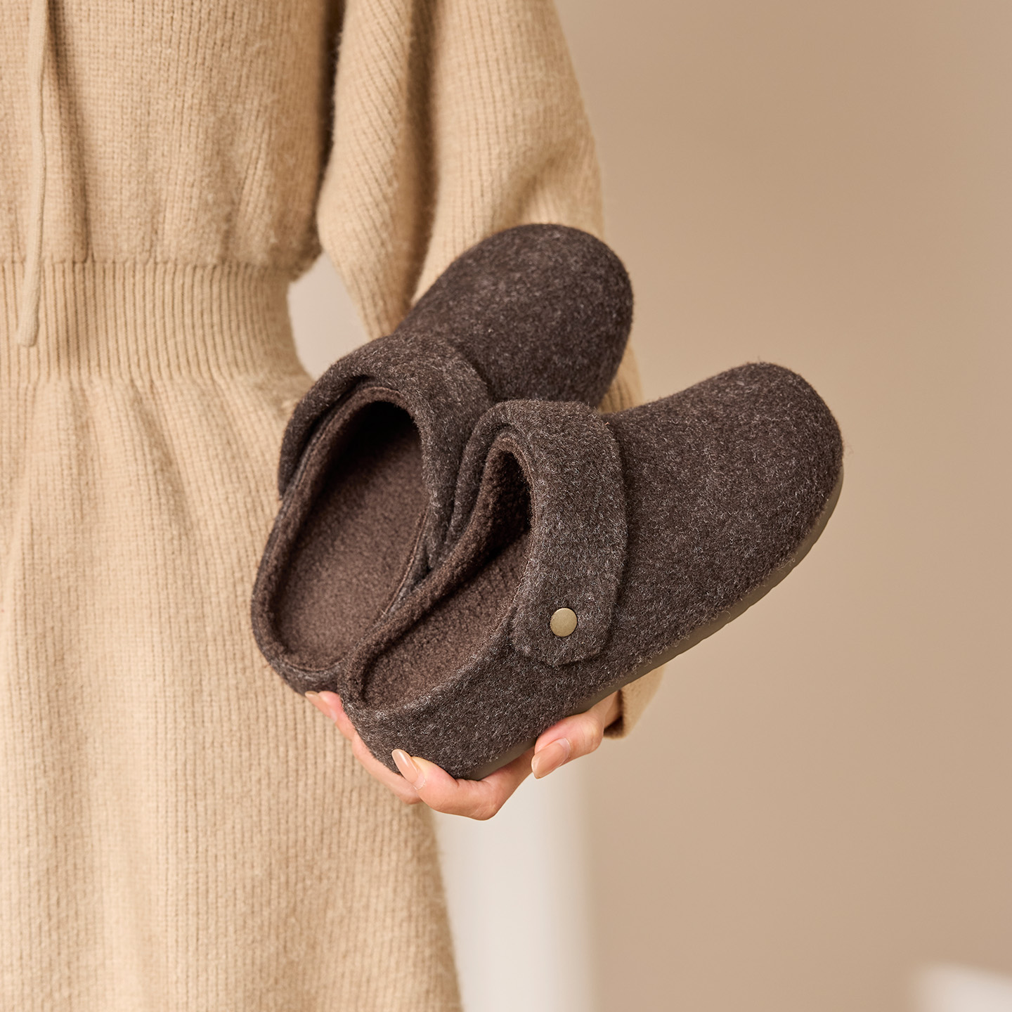 女鞋 女全包懒人软底单鞋 2025冬季 一脚蹬平底毛毛勃肯鞋 新款 奥康