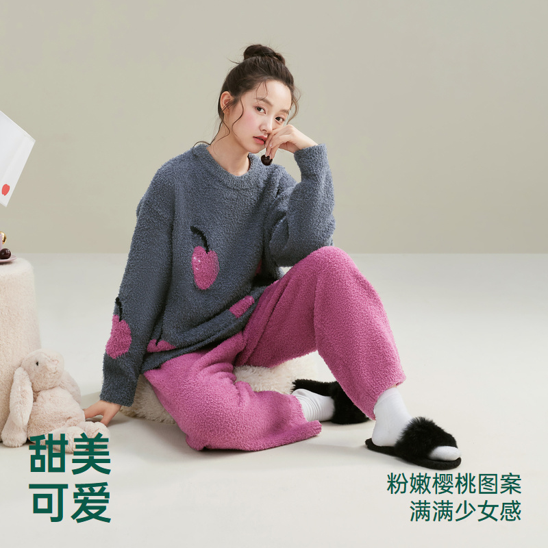 加厚珊瑚绒家居服套装 安之伴 2025新款 半边绒睡衣女冬季 巨保暖
