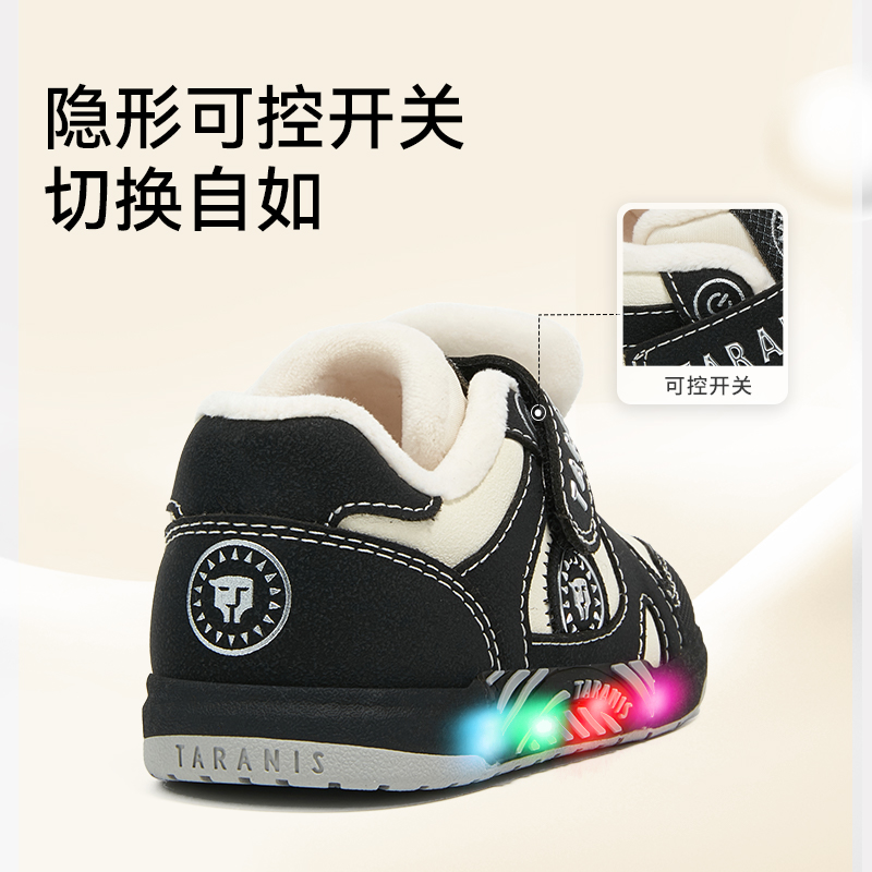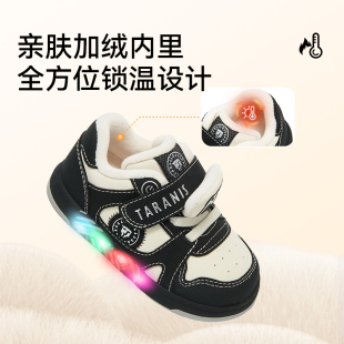 魔术贴防滑板鞋 泰兰尼斯冬季 宝宝鞋 男童女童保暖闪灯鞋 加绒学步鞋