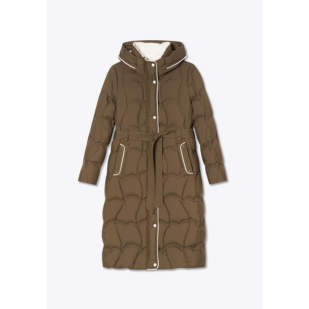 防泼水鸭绒保暖外套 连帽羽绒服女士2025冬季 安踏面包羽绒 中长款