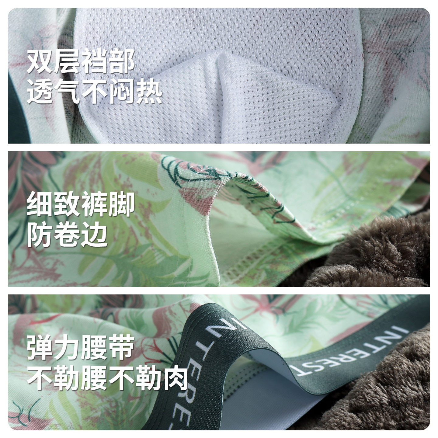 头新款 纯棉透气裤 男生3条装 平角裤 全棉时代男士 短裤 抗菌内裤