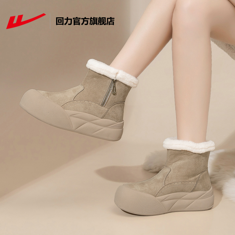 棉鞋 回力官方旗舰店厚底雪地靴女款 加绒保暖毛毛鞋 冬季 女 2025新款