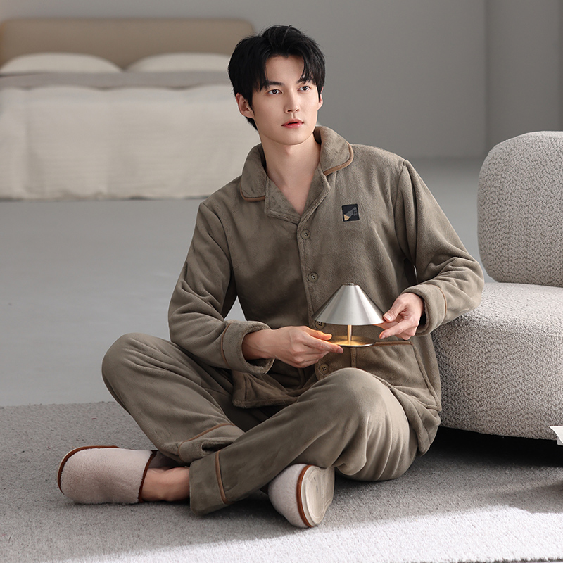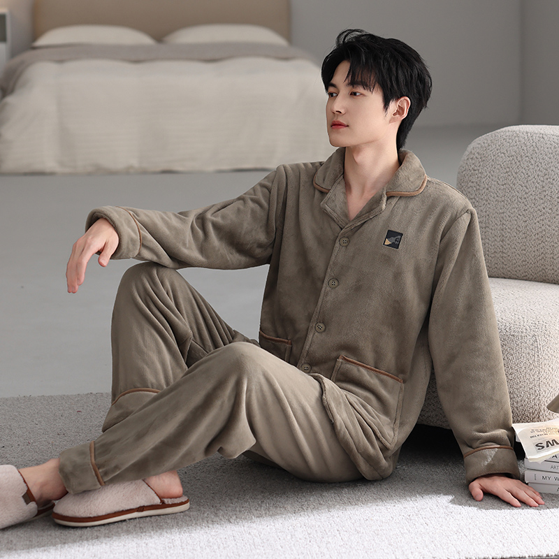 法兰绒家居服套装 加绒加厚珊瑚绒秋冬大码 新 睡衣男冬季 南极人男士