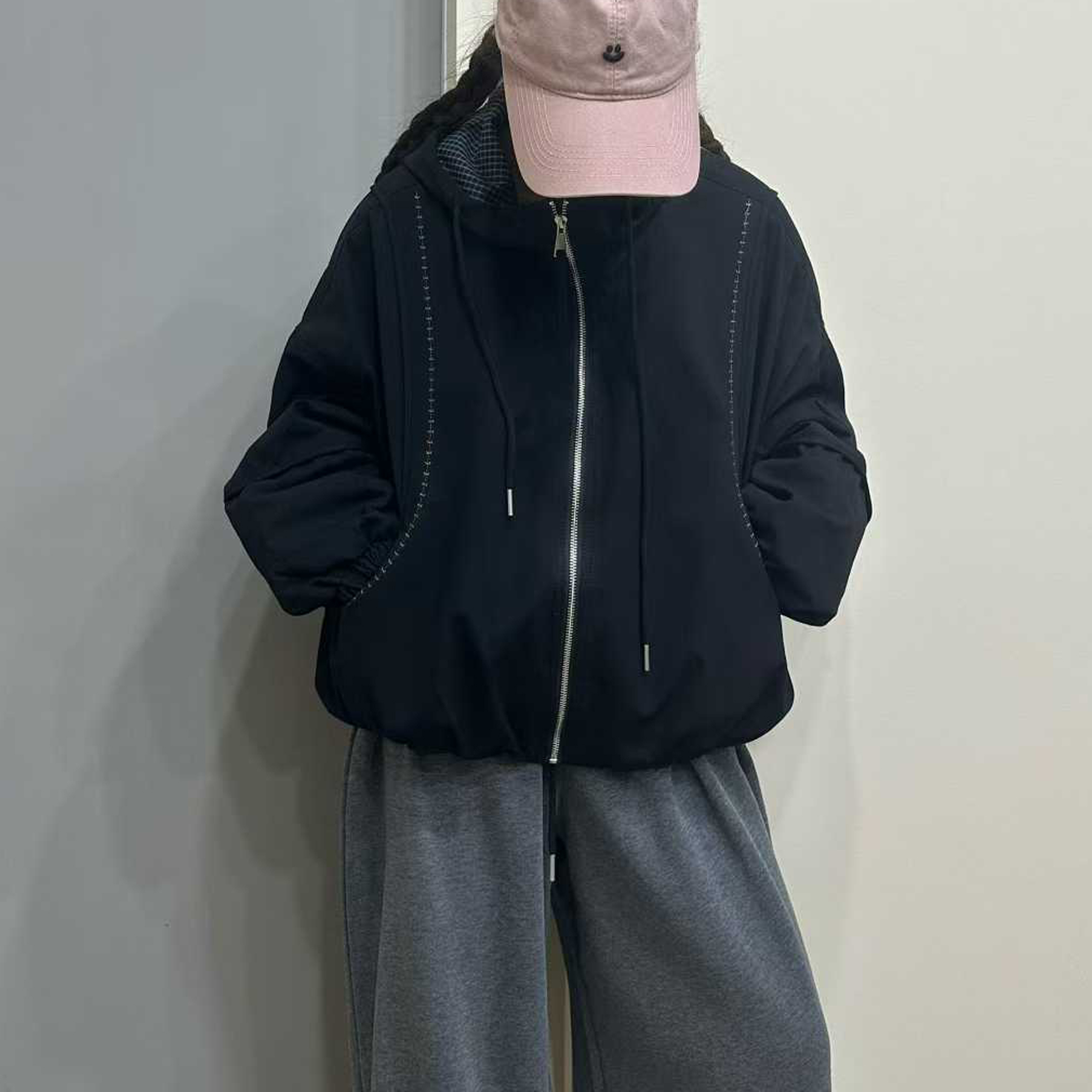宽松休闲小个子棉袄 2025韩版 加棉加厚连帽外套女短款 棉衣秋冬新款