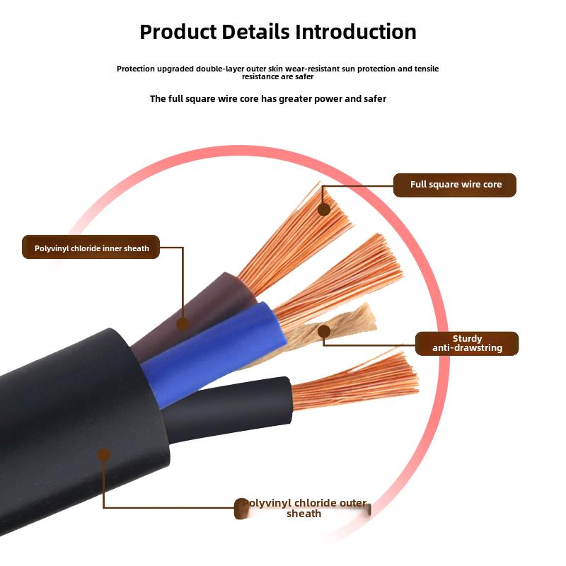 电线国标纯铜芯护套线2芯3芯1.52.54平方软线电缆线电源线铜线
