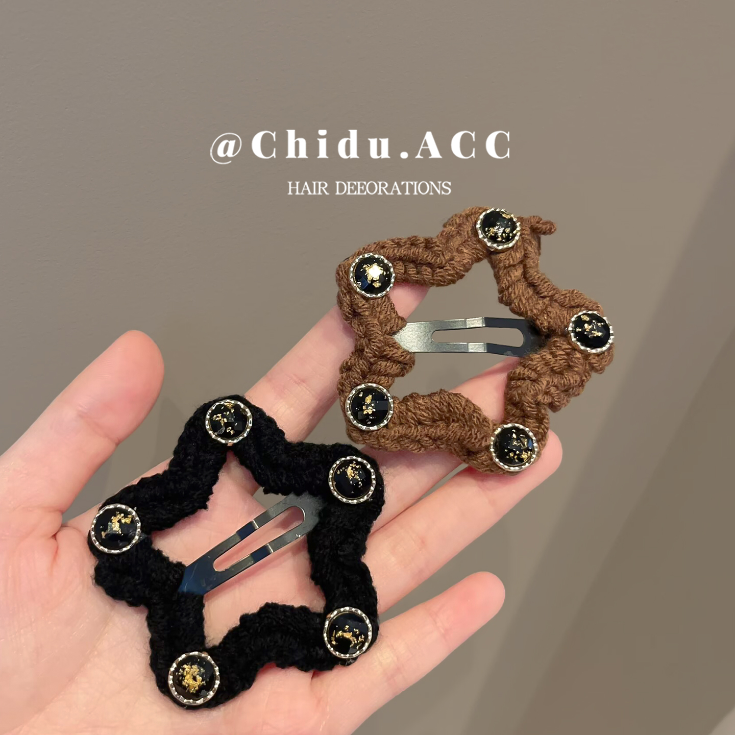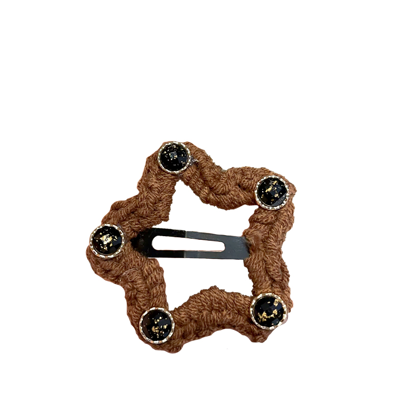 新款 毛线编织五角星星毛绒发夹女侧边刘海夹蝴蝶结bb夹子发卡发饰
