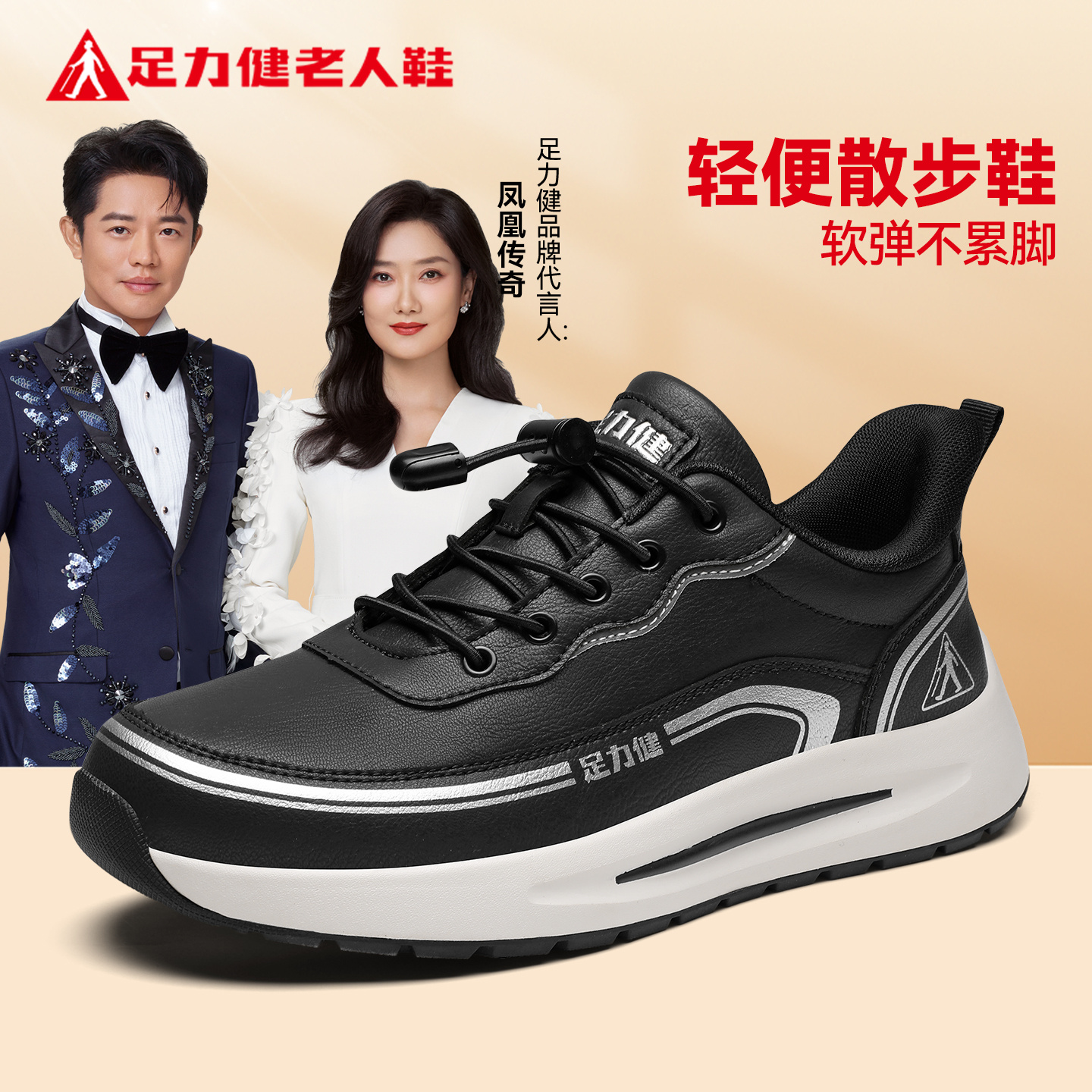 子 皮面健步软底舒适休闲女鞋 足力健老人鞋 官方旗舰店中年妈妈秋季