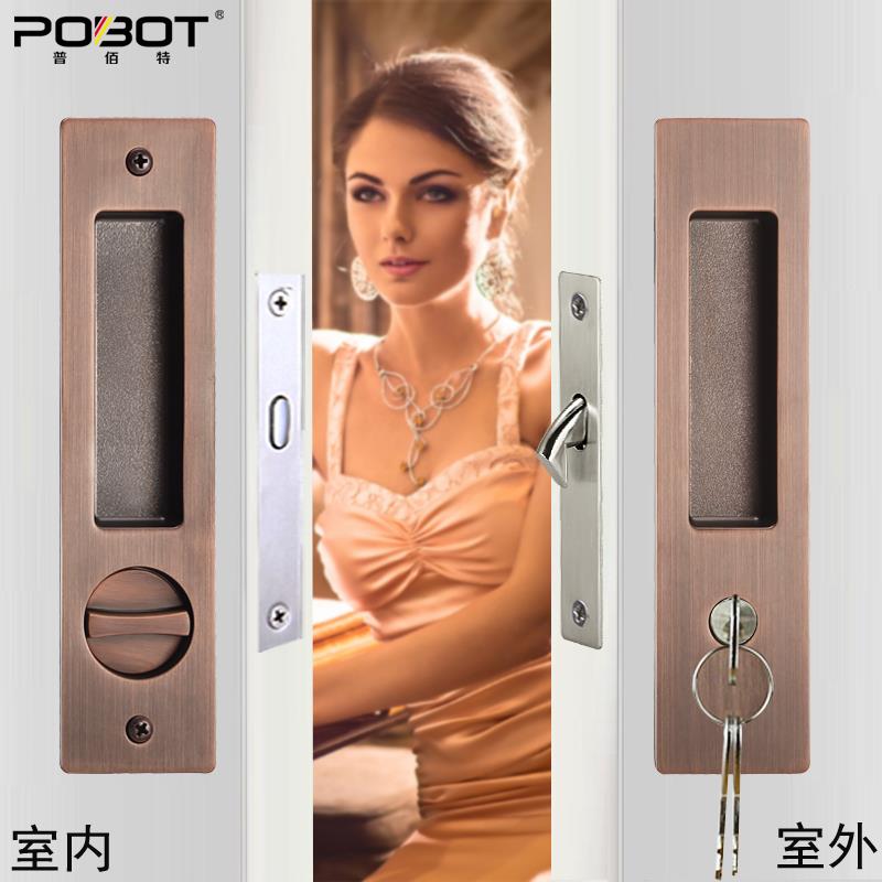 美式 木移门锁推拉门锁黑色室内阳台厨房卫生间移动滑门钩锁带钥匙