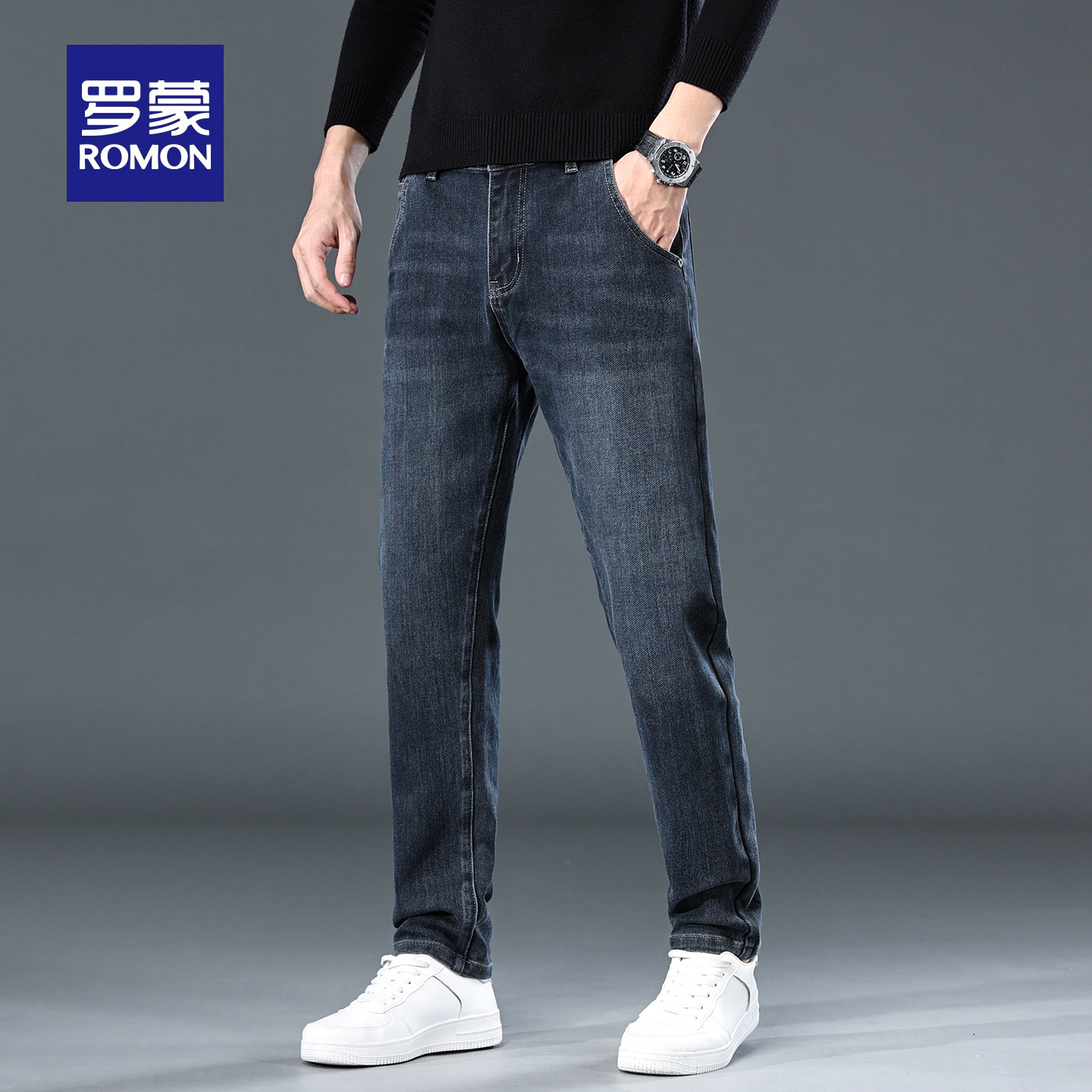 男士 商务休闲长裤 修身 加绒中年爸爸装 小脚秋冬季 罗蒙直筒牛仔裤