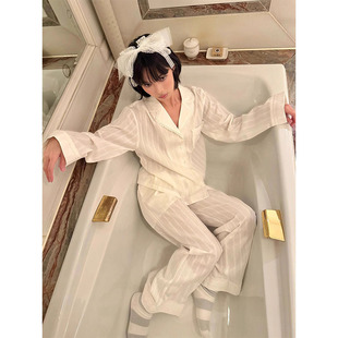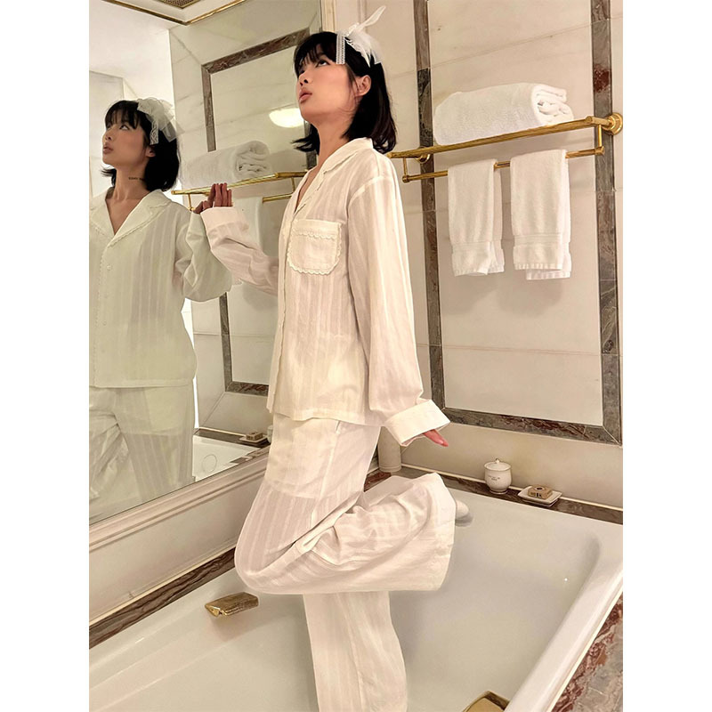 双层纱布家居服套装 2025新款 可外穿 睡衣女春秋季 花边舒适纯棉长袖