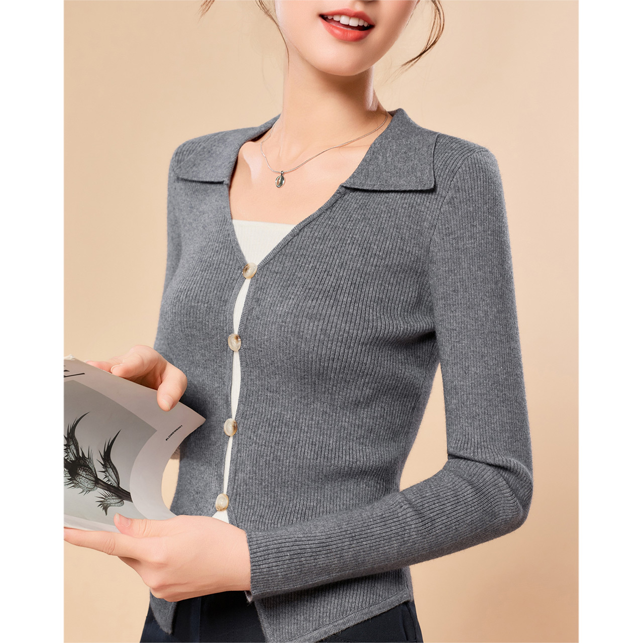 修身 针织衫 2025新款 妖精 薄款 绵羊毛 早秋穿搭打底衫 上衣 口袋