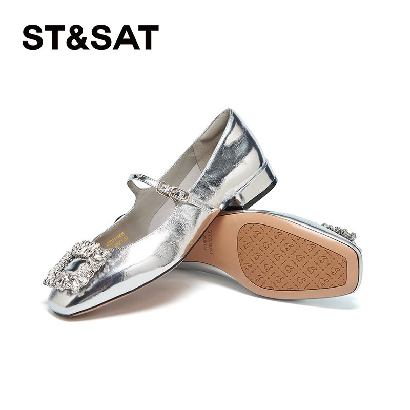 女2025年夏季 小香风玛丽珍鞋 新款 平底浅口单鞋 法式 热风银色晚晚鞋