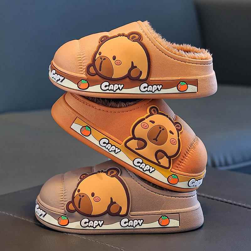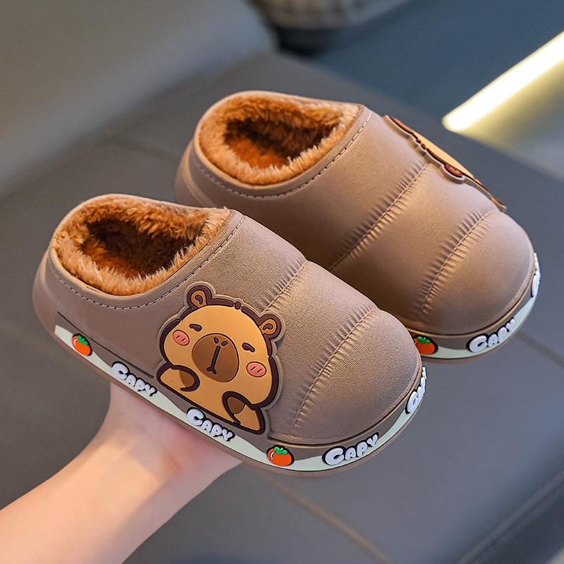 男 包跟亲子家居室内保暖加绒棉鞋 红豆卡皮巴拉儿童棉拖鞋 女童冬季
