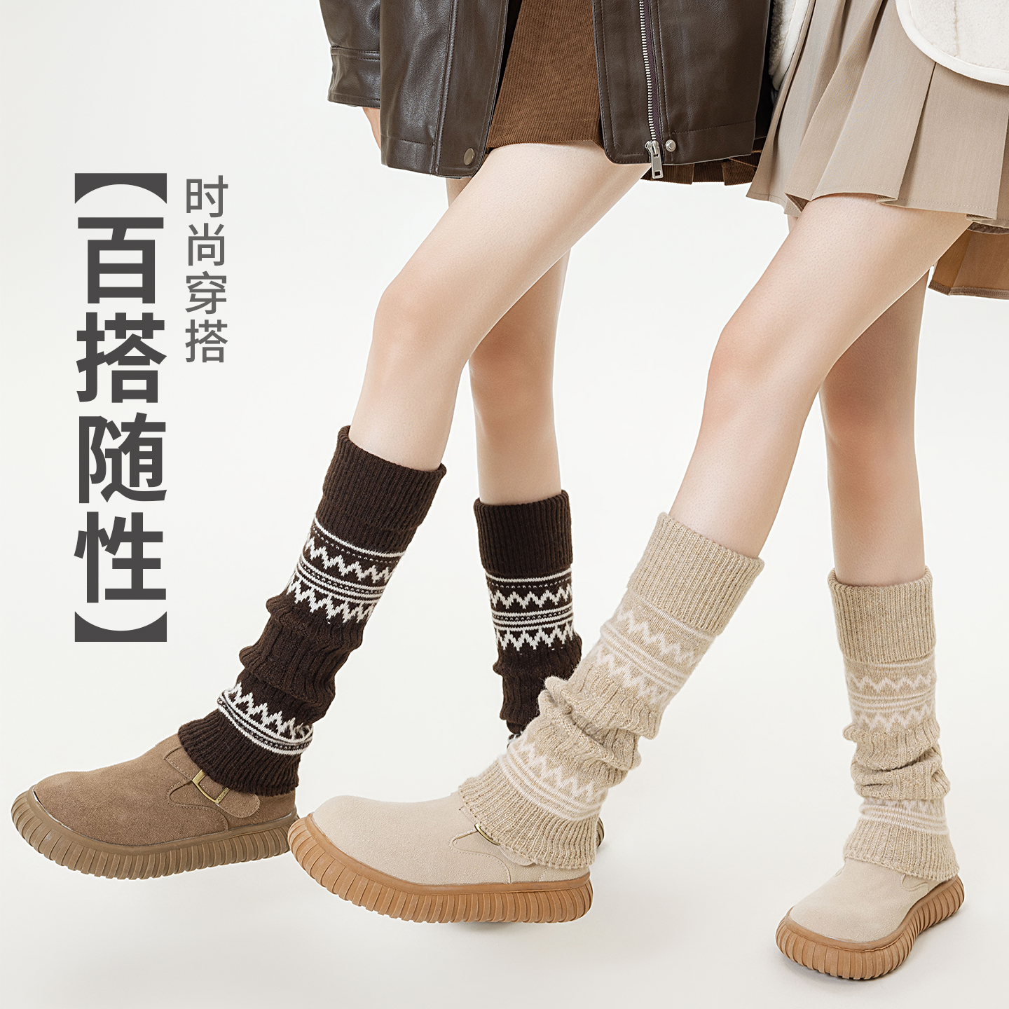 快乐备份|纽奈雪地靴堆堆袜套女费尔岛保暖微喇小腿腿套配鲨鱼裤