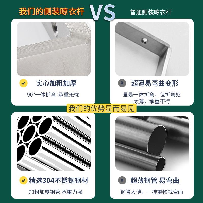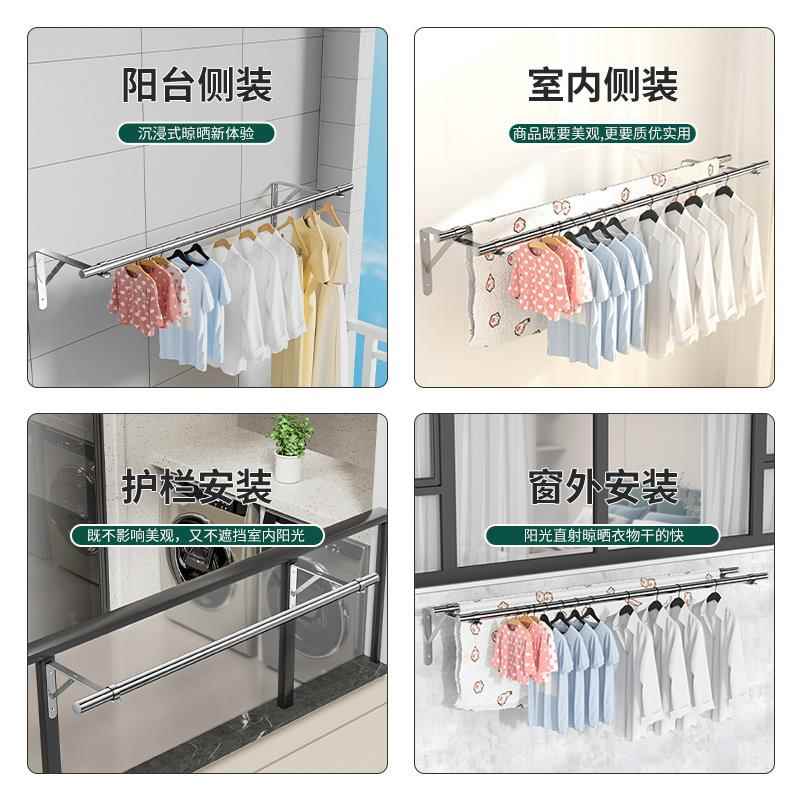 304不锈钢阳台晾衣架侧装 室外晒衣杆 三角支架晾衣杆固定外墙横装