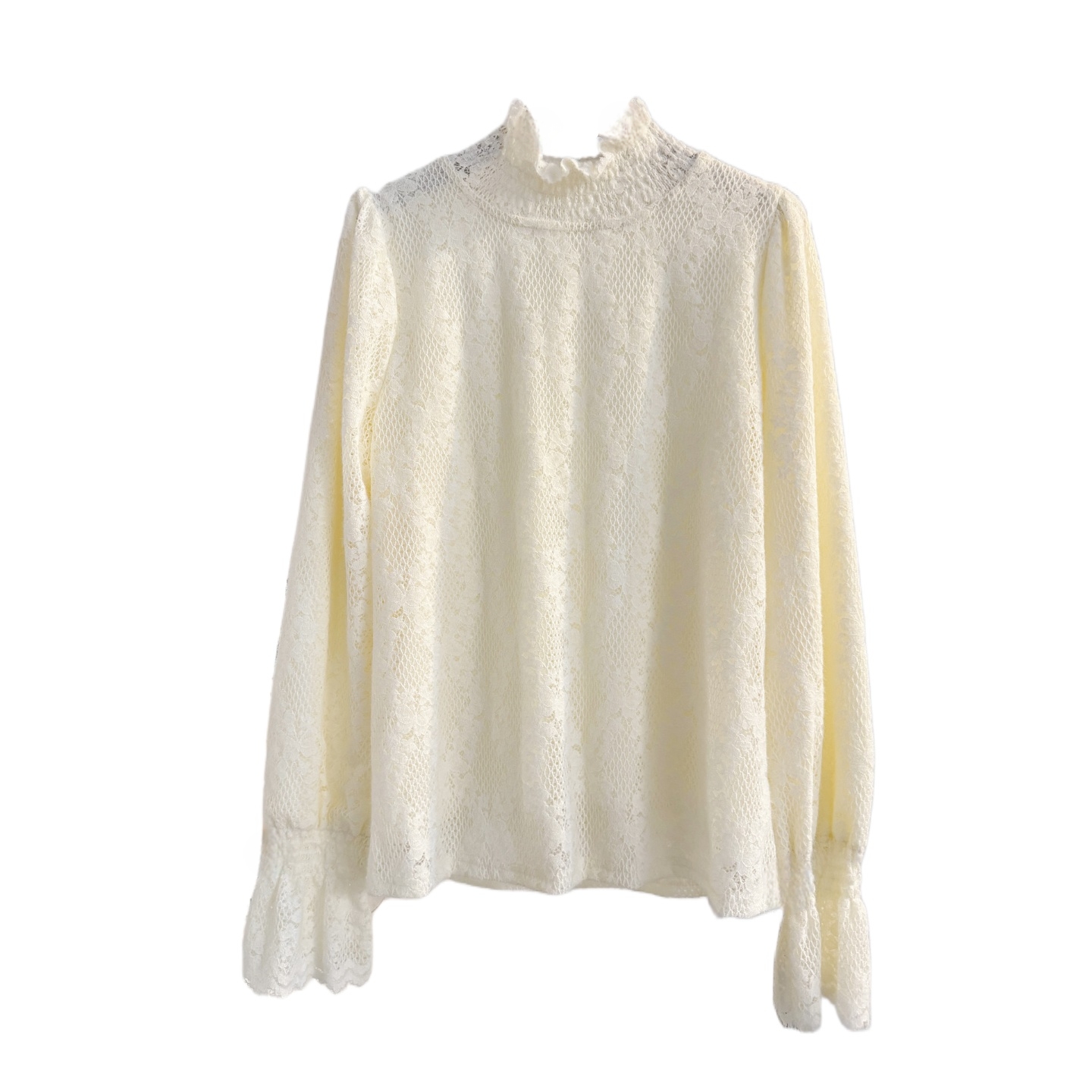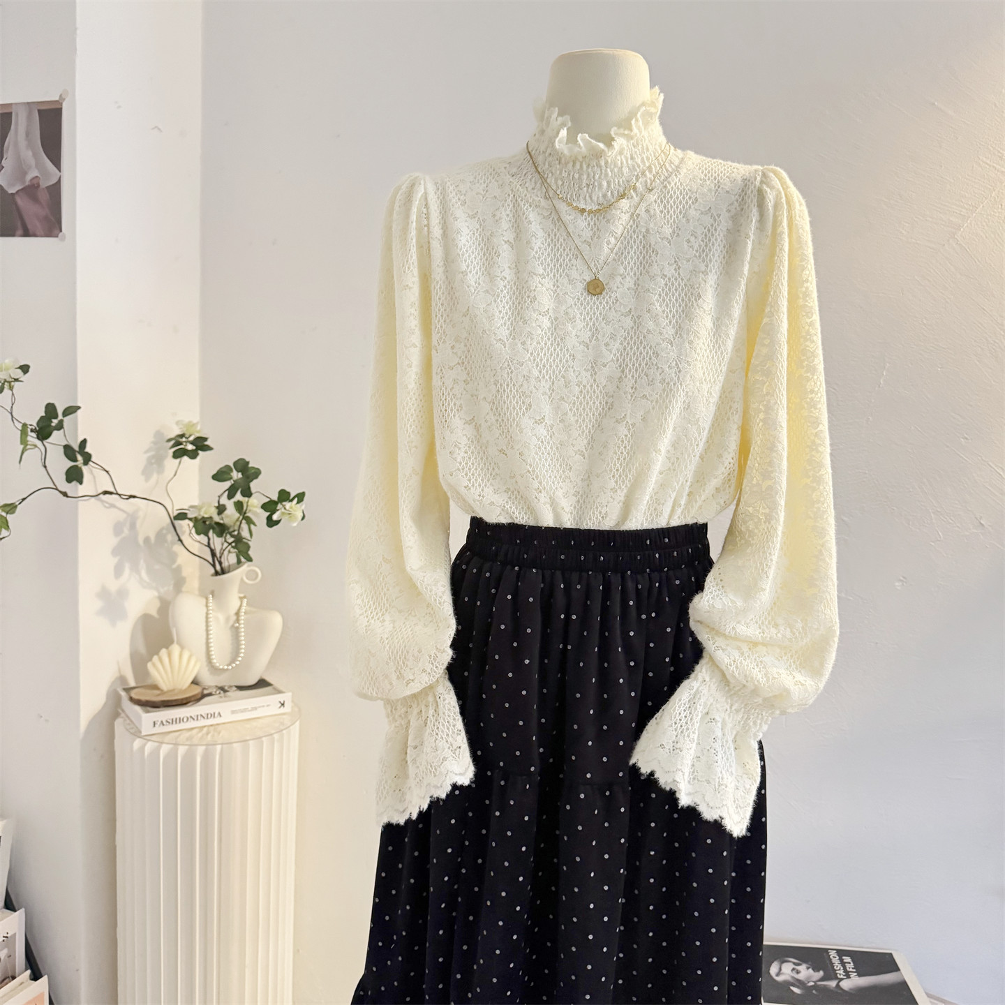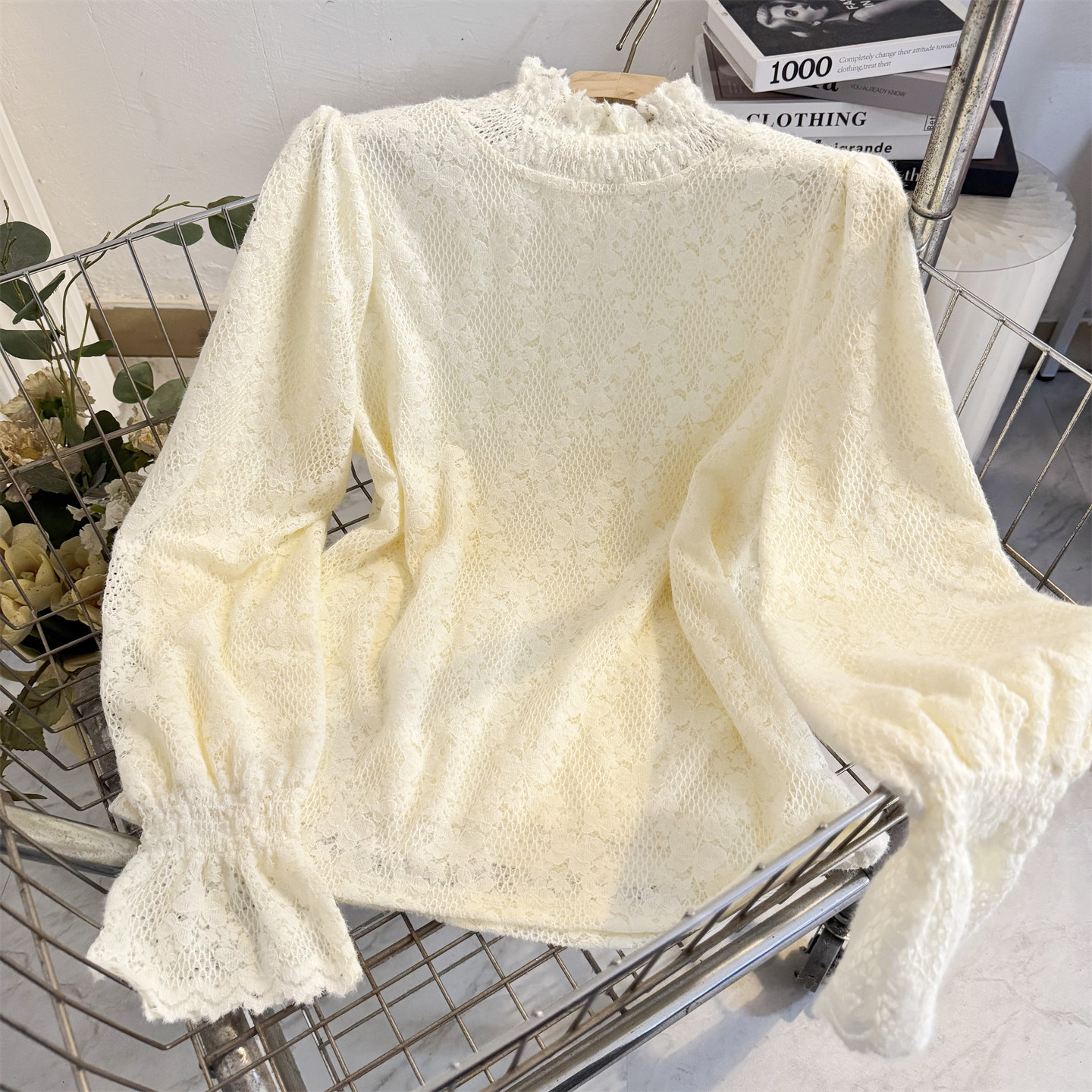 气质内搭打底小衫 女2025秋冬季 上衣 加绒加厚衬衫 花边半高领蕾丝衫