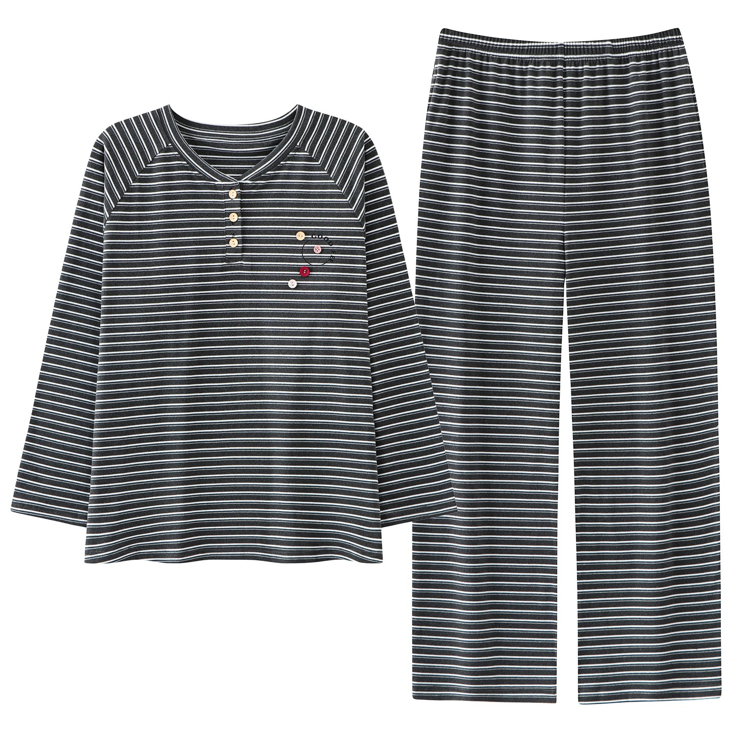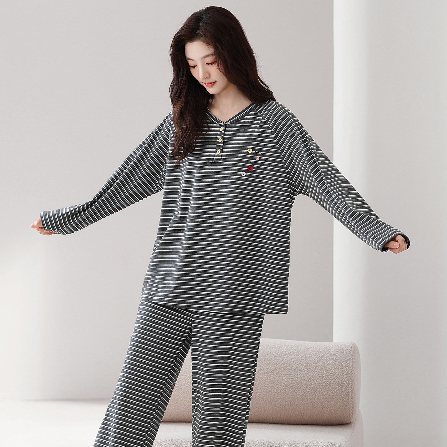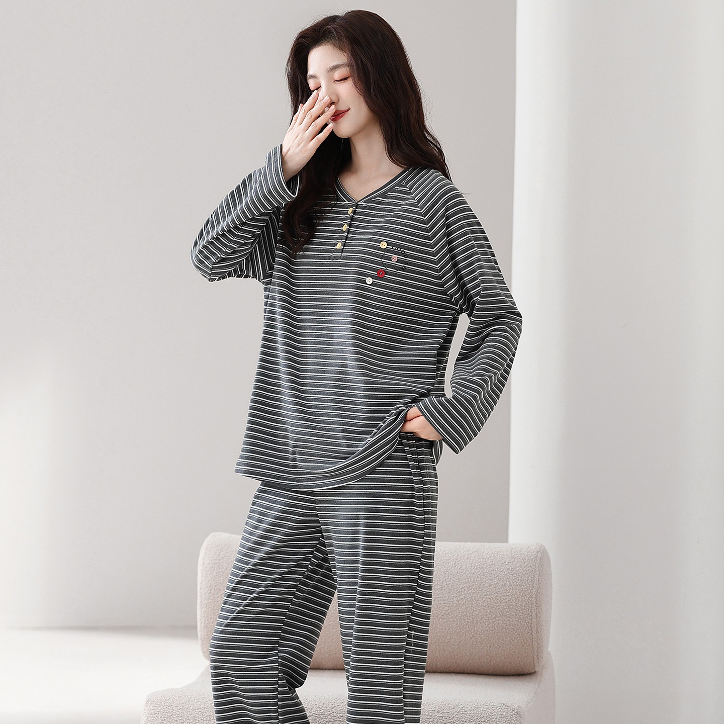 可外穿超柔软保暖冬家居服套装 德绒女士睡衣条纹长袖 高级感春秋季