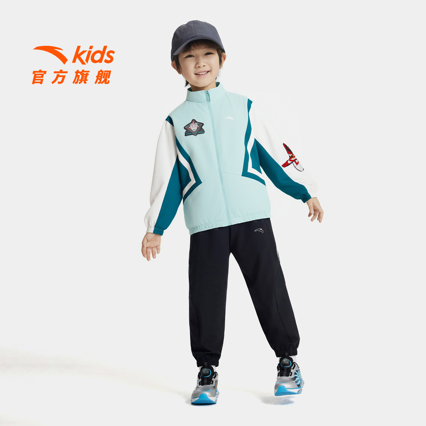 安踏儿童外套男小童运动上衣2025年秋季 男孩奥特曼运动薄外套 新款