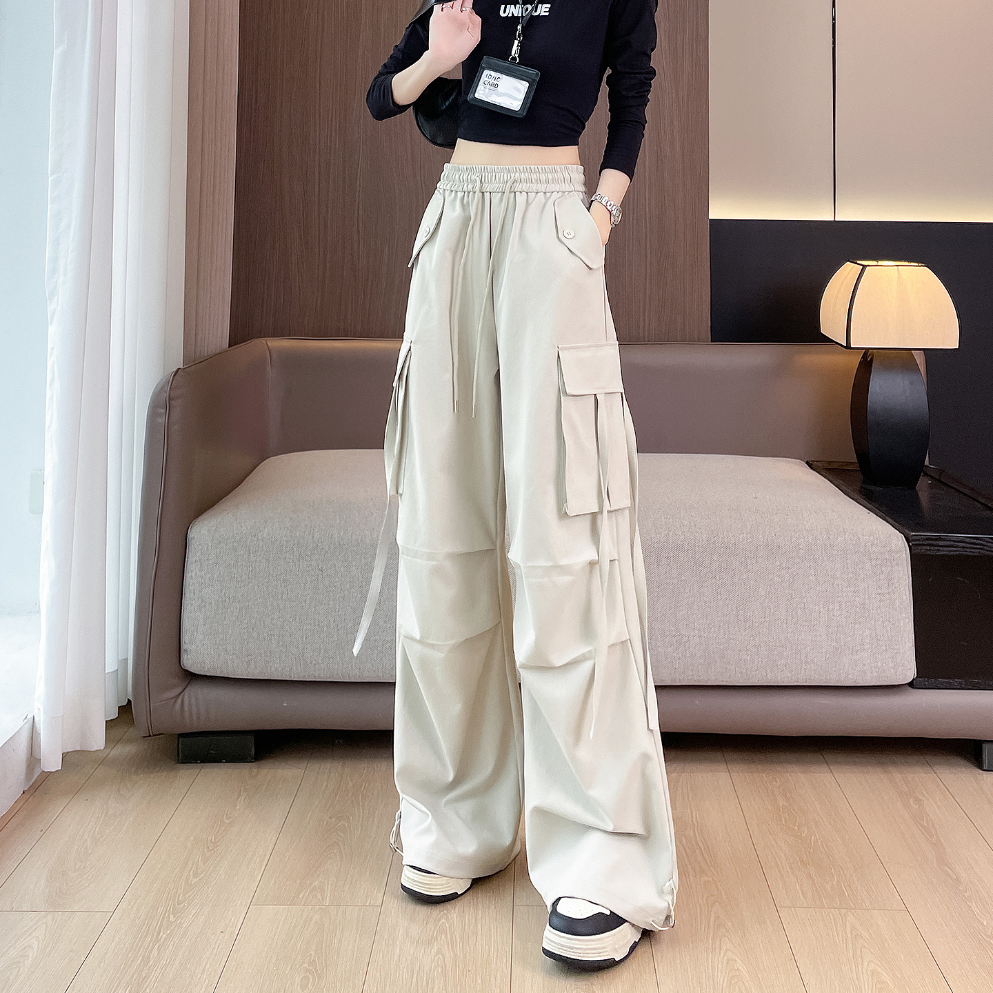 小个子白色宽松直筒休闲运动阔腿裤 美式 女春秋2025新款 裤 超火工装