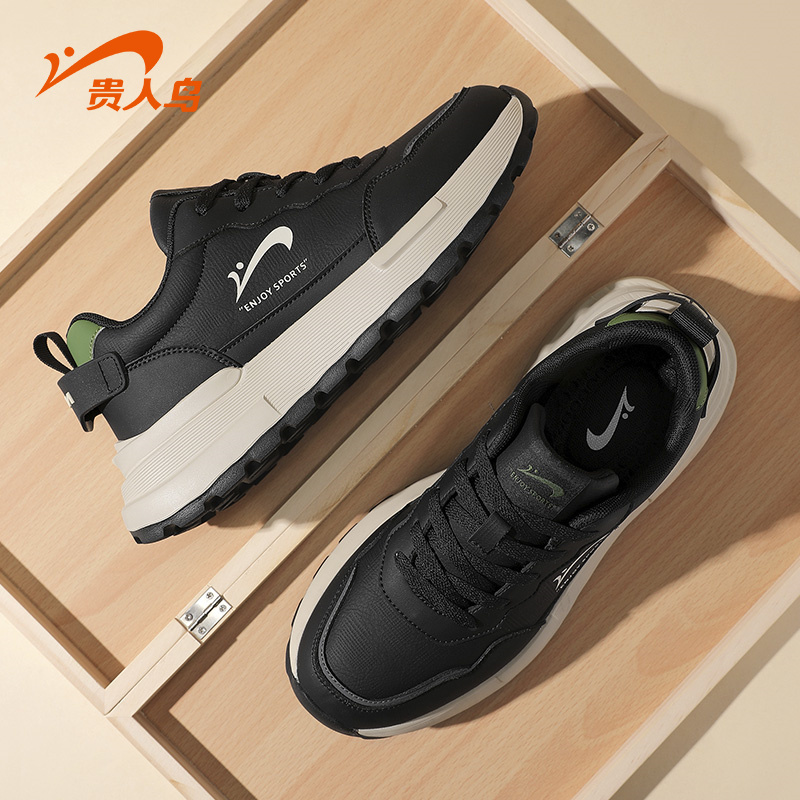 轻便软底减震休闲黑色爸爸跑鞋 秋冬跑步鞋 男鞋 乔丹皮面防水运动鞋