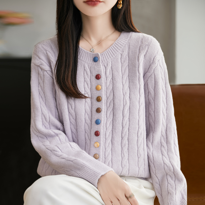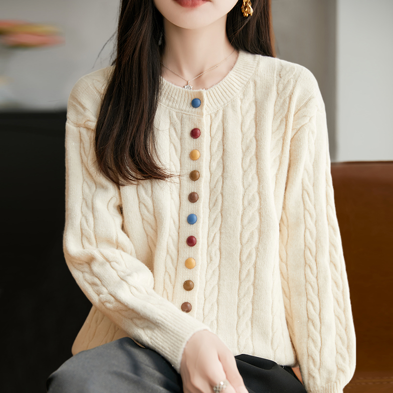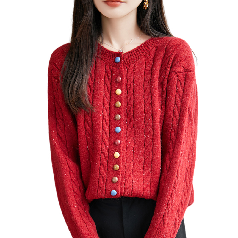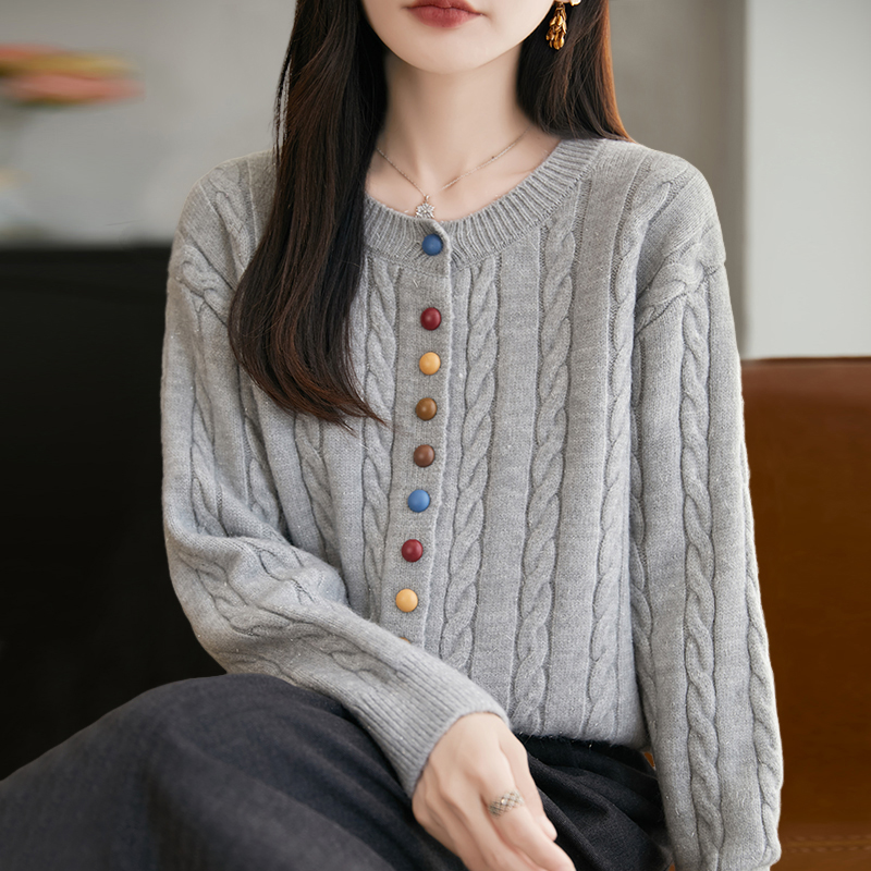 女装 春秋外搭洋气大码 上衣 外套女2025新款 秋冬彩扣螺纹针织开衫