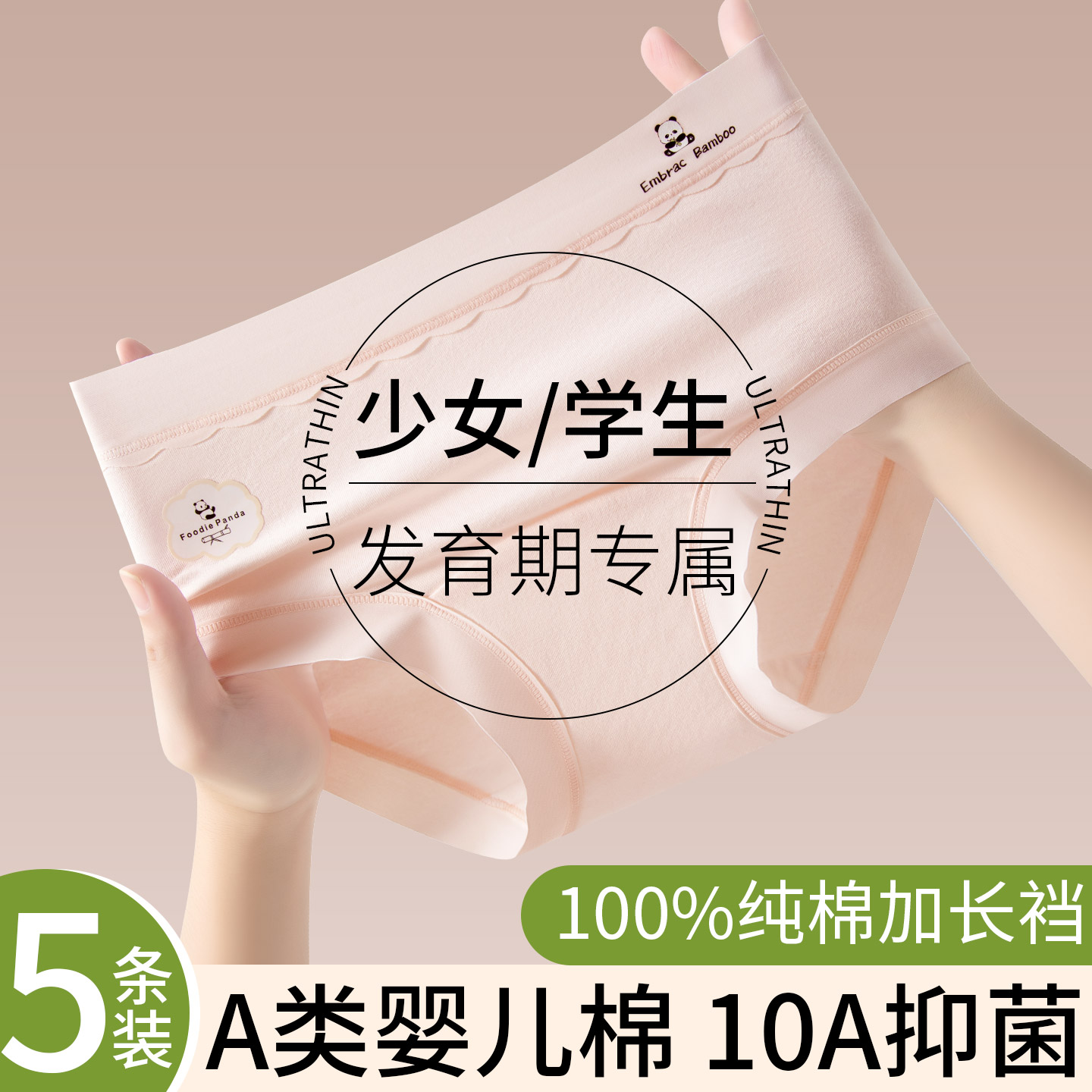 青少年少女孩内裤 女士纯棉7a级抗菌加长裆初高中学生大童三角短裤