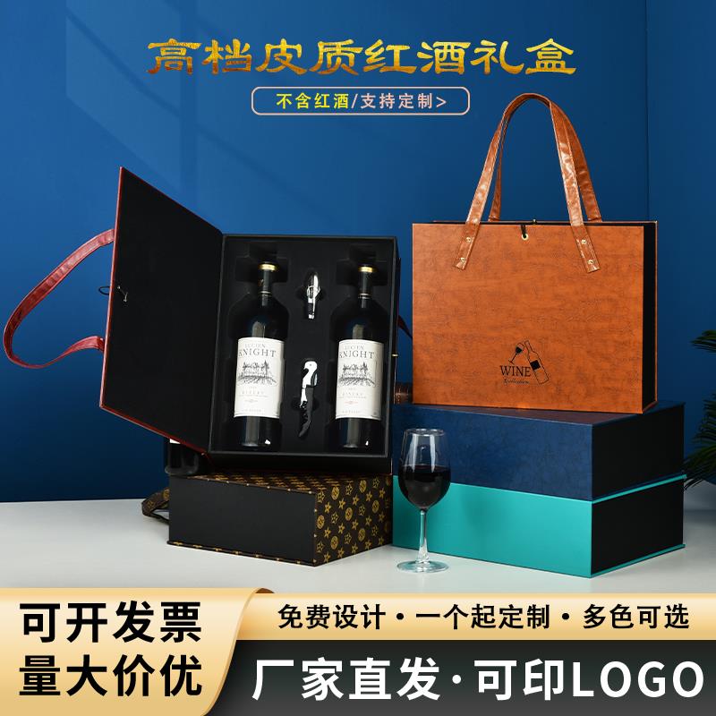 高档红酒包装 葡萄酒箱子定制双祇酒盒 礼盒手提四支皮盒空盒六瓶装