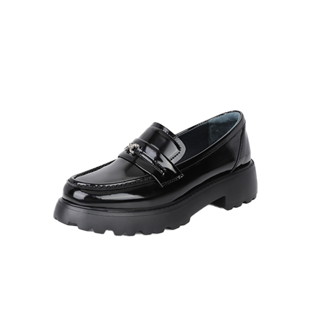 女中跟乐福鞋 VME 真皮圆头粗跟单鞋 英伦风2025新款 舞魅黑色小皮鞋
