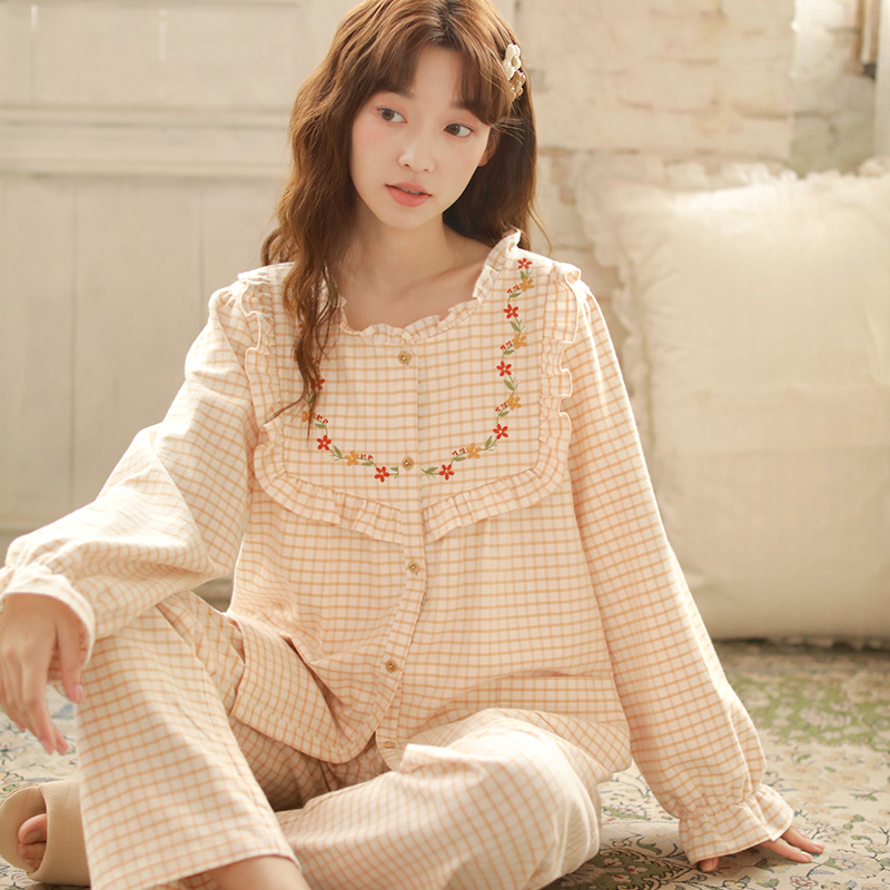 半边绒刺绣ins家居服套装 yso 新款 睡衣女冬季 花花梦园