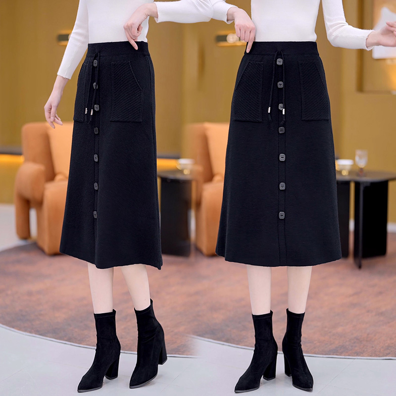 大码 半身裙女开叉胖妹妹毛线裙针织包臀裙高腰长裙胖mm200斤秋冬