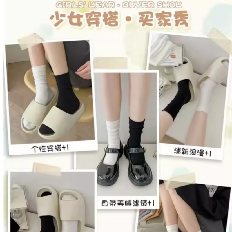 月子袜 无骨2025新款 白色堆堆袜子女秋冬薄款 中筒袜棉袜配小皮鞋