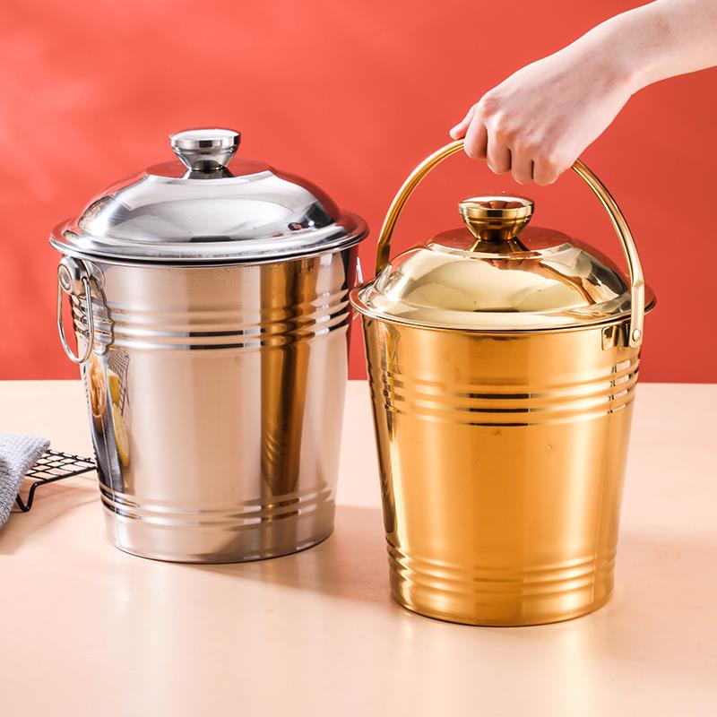 加厚不锈钢冰桶手提小冰块桶糖水桶带盖奶茶店冷饮桶酒吧户外商用