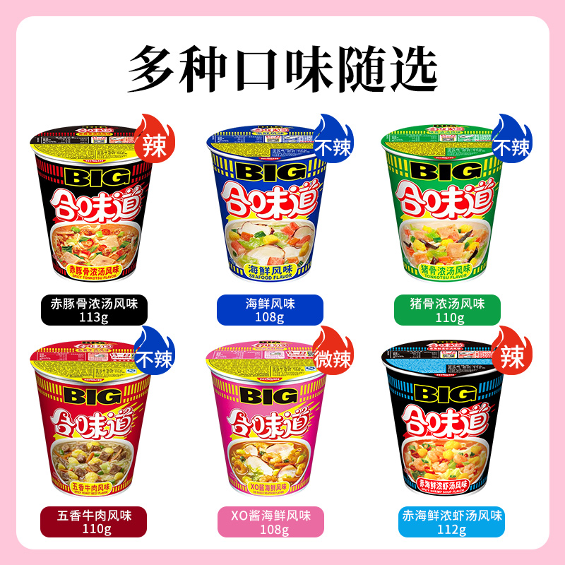 日清合味道大杯big杯合味道杯面整箱海鲜豚骨XO酱虾仁方便面泡面