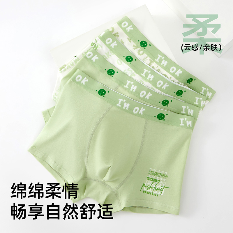 青少年内裤 印花抗菌宽松纯棉四角 男童发育期初高中生男孩2025新款