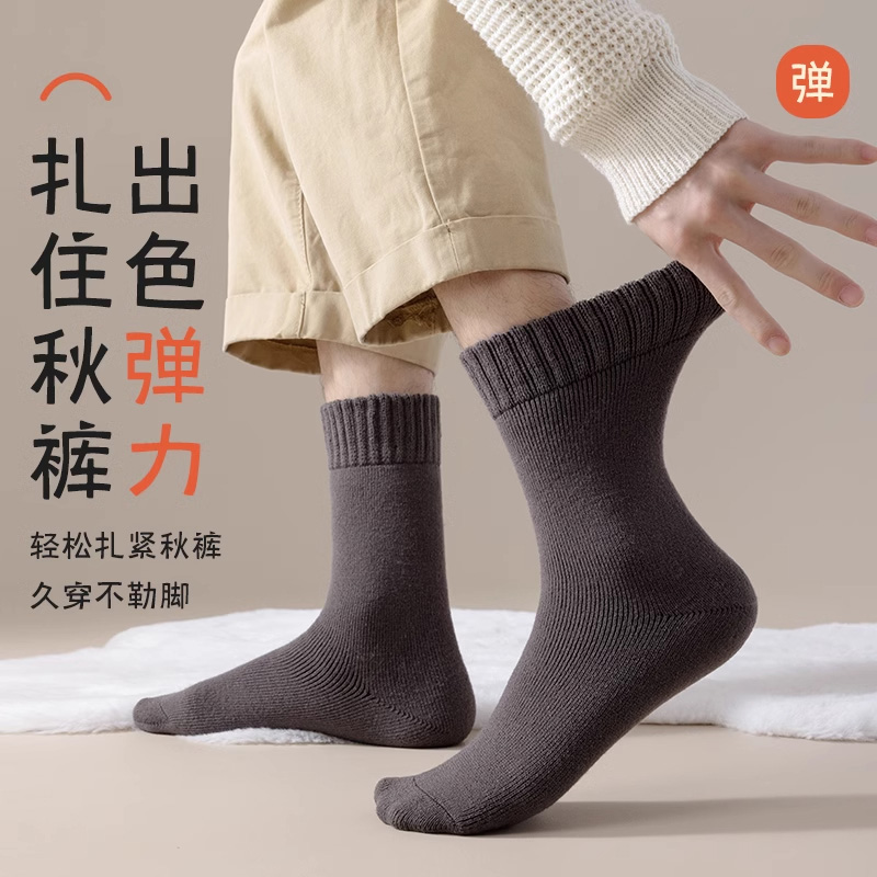 超厚袜子男秋冬季 长袜 保暖中筒袜居家睡眠地板羊绒袜加厚加绒男士