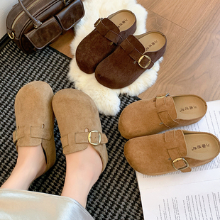 外穿鞋 小个子一脚蹬包头半拖鞋 女2025年早秋新款 厚底内增高勃肯鞋