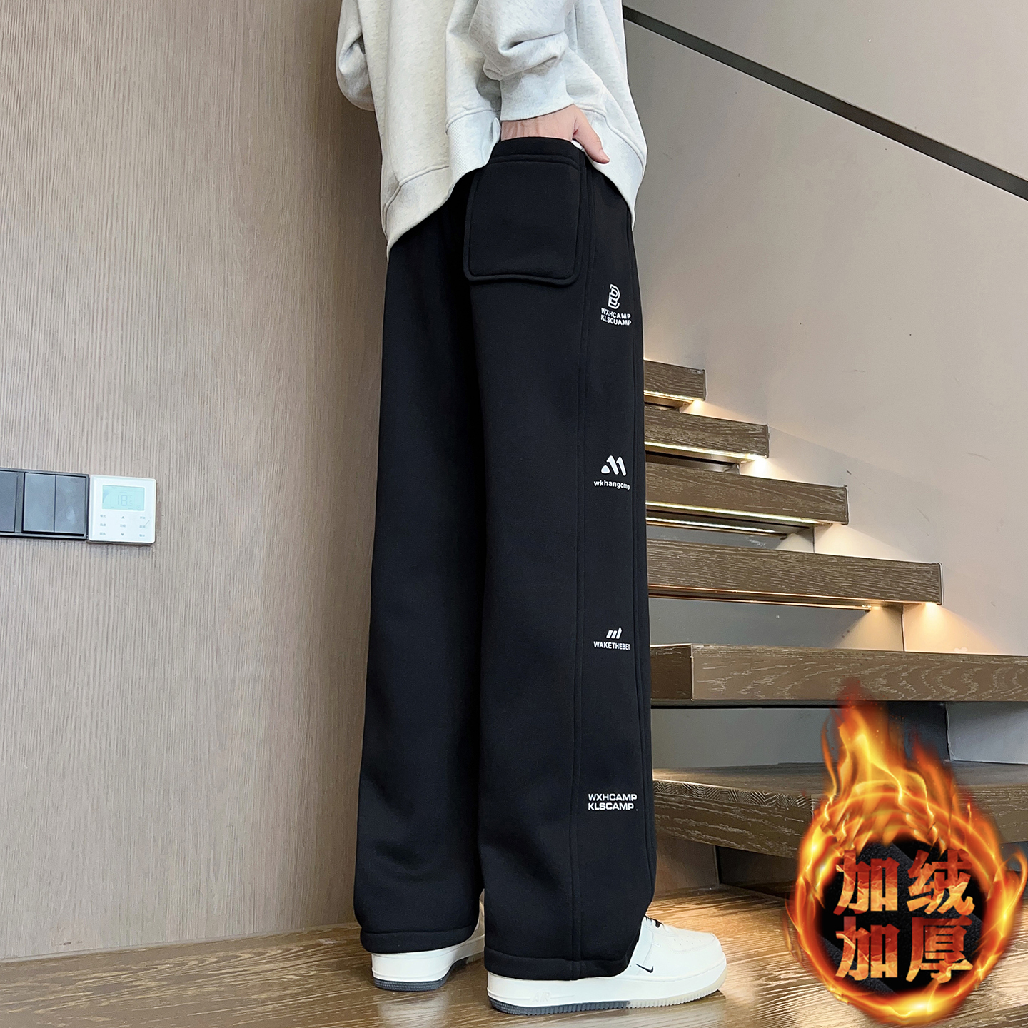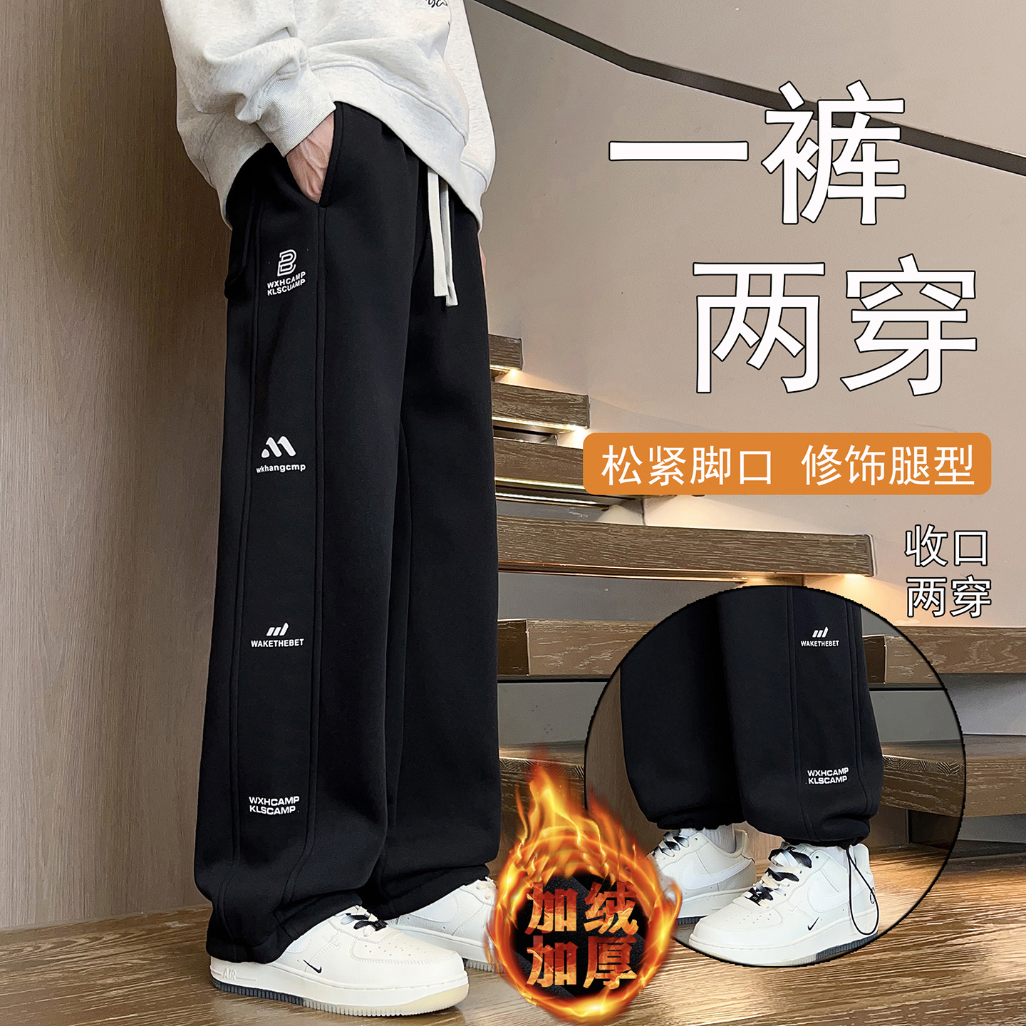系带松紧宽松百搭休闲裤 鸭鸭羊毛蚕丝保暖卫裤 男士 新款 2025秋季