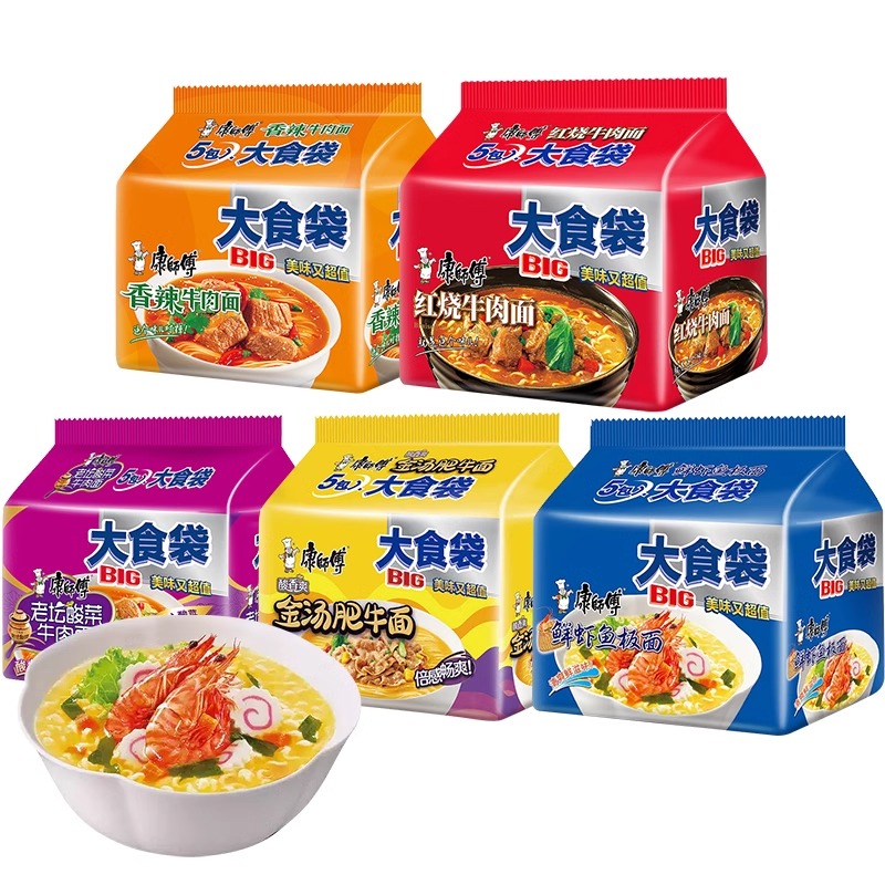 康师傅方便面BIG大食袋10袋红烧牛肉面速食袋装 组合拉面