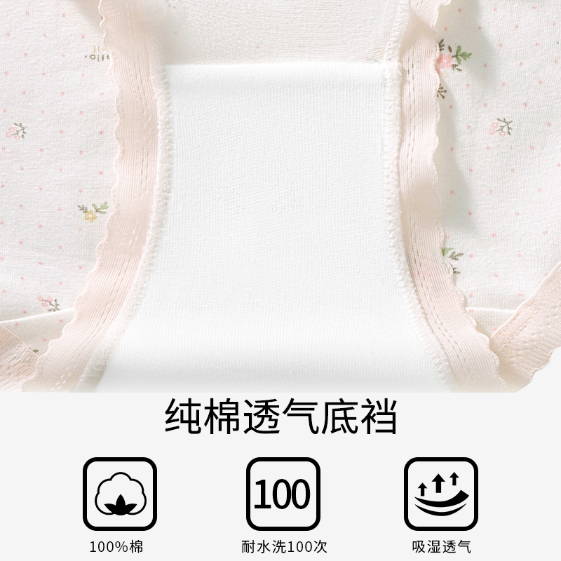 a类抗菌全棉裆中腰印花甜美透气舒适三角裤 女士内裤 纯棉2025新款
