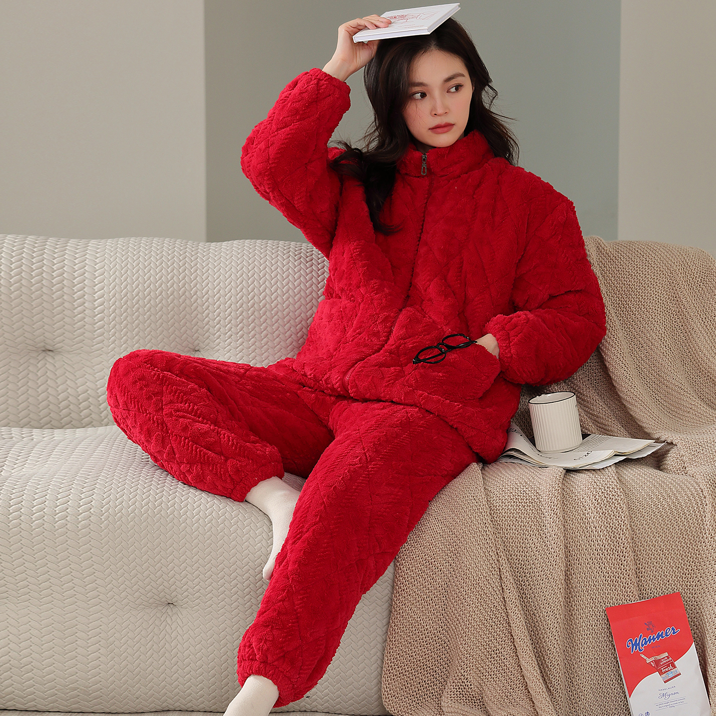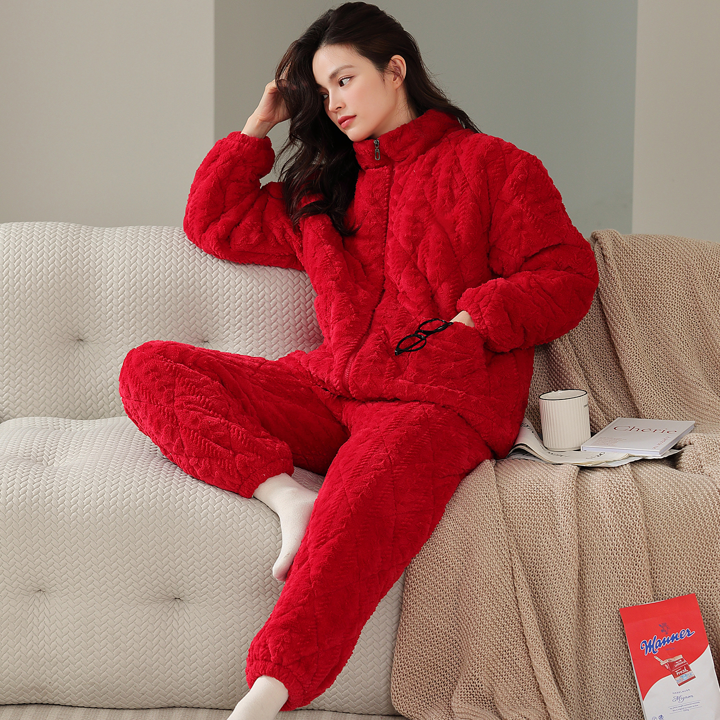 红豆珊瑚绒睡衣女羊羔绒抗静电加厚桂花绒甜美保暖外穿家居服套装