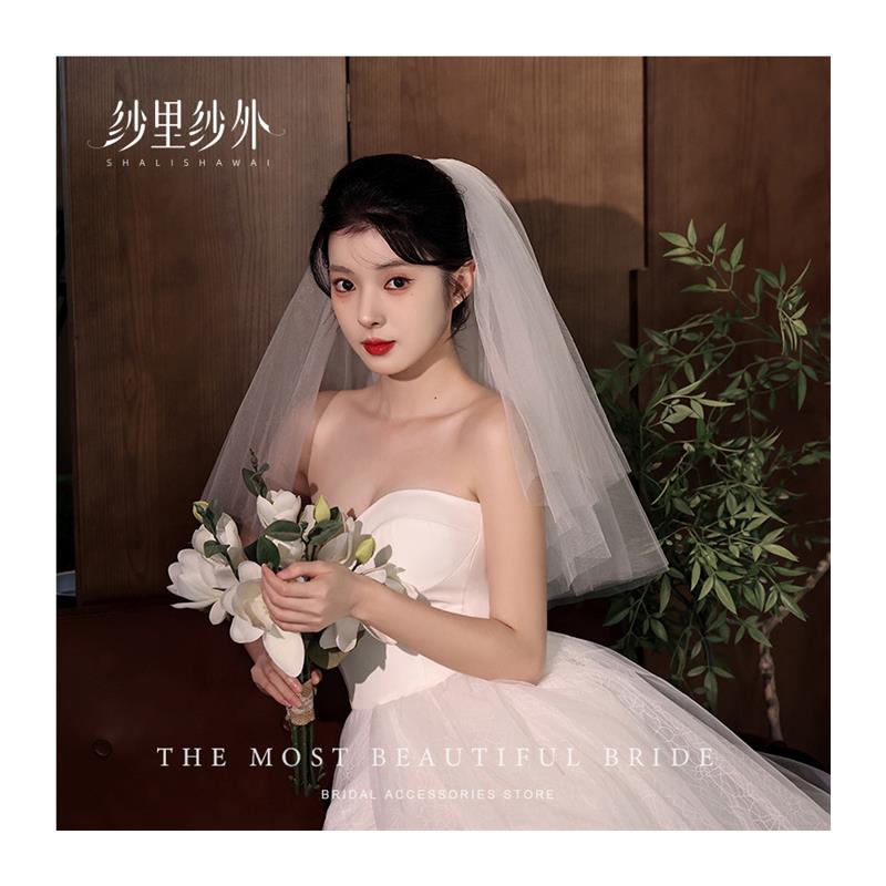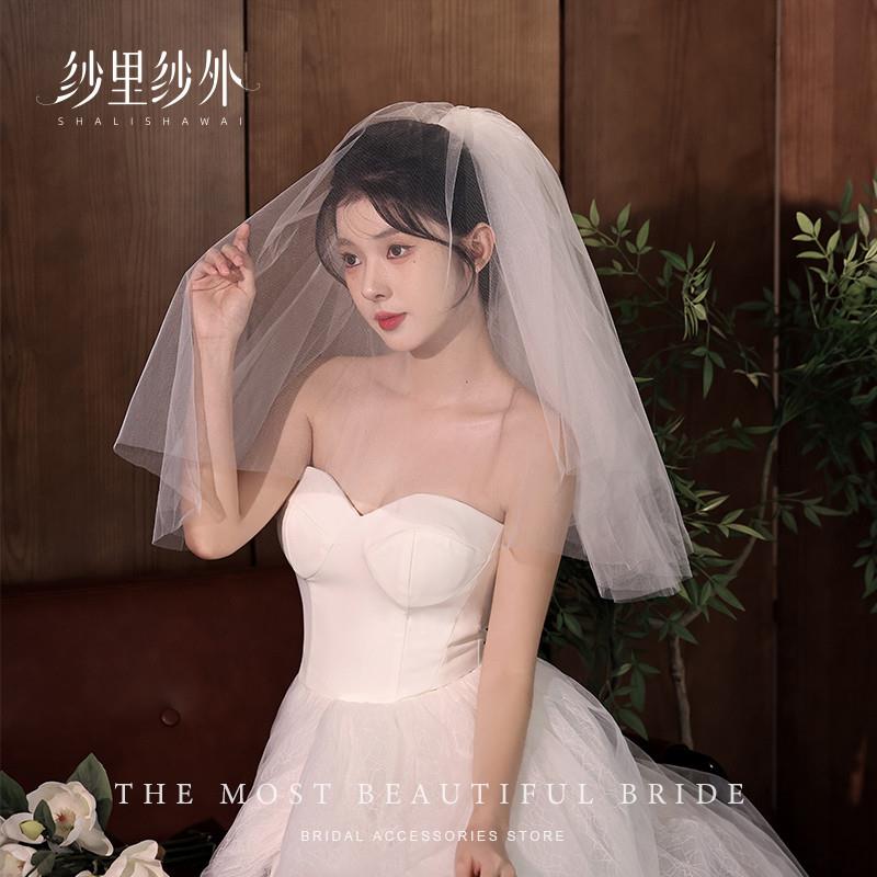 好货头纱领证新娘结婚登记头饰法式 简约旅拍写真求婚 超仙森系短款
