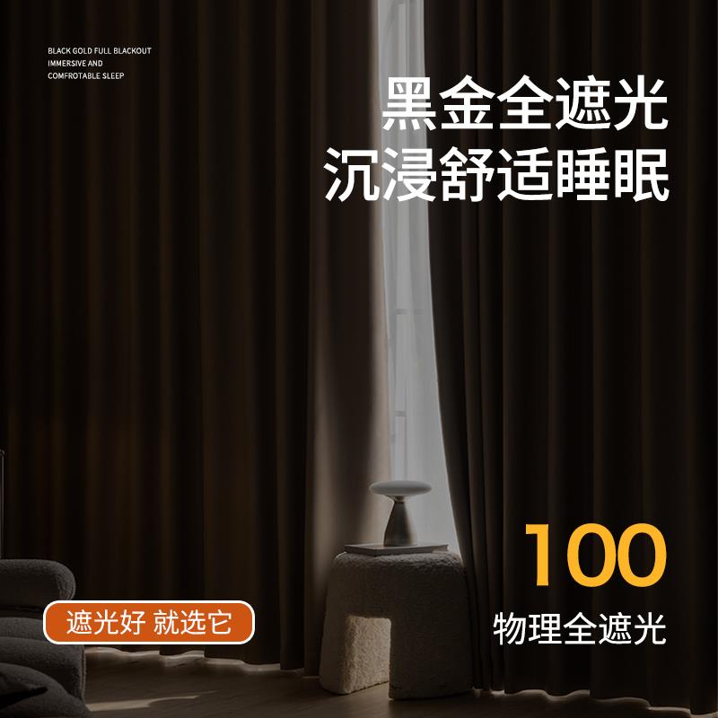 100%全遮光窗帘影院级客厅卧室阳台防晒隔热窗帘布定制遮阳不透光