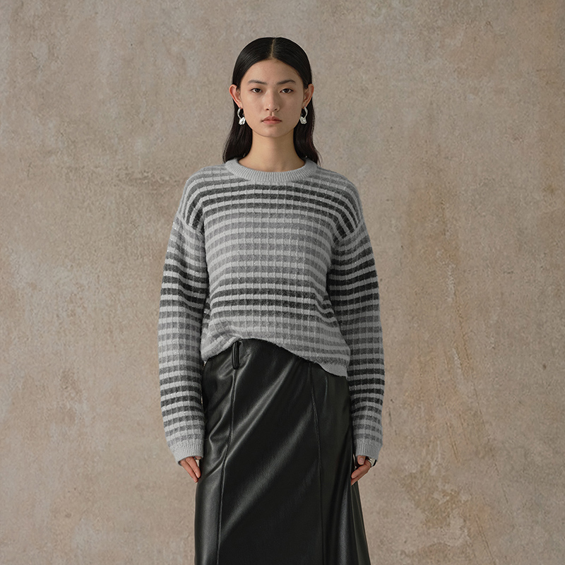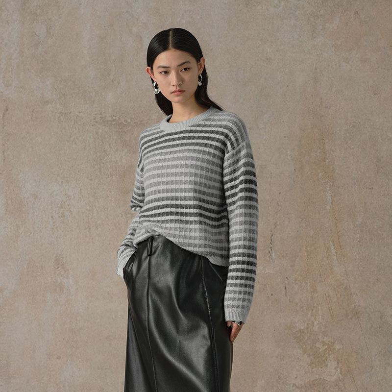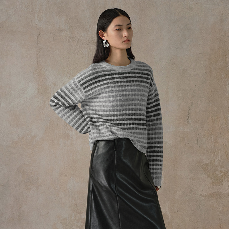 高级感上衣宽松打底针织衫 圆领100%纯山羊绒衫 女高端毛衣秋冬新款