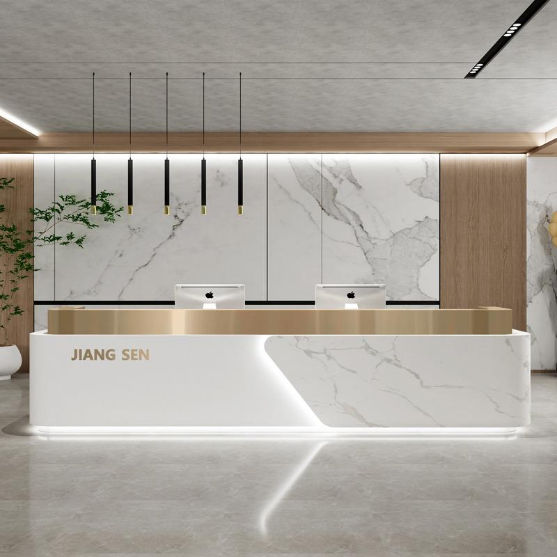 公司办公室前台接待台酒店服务台前台桌定制岩板大理石吧台收银台